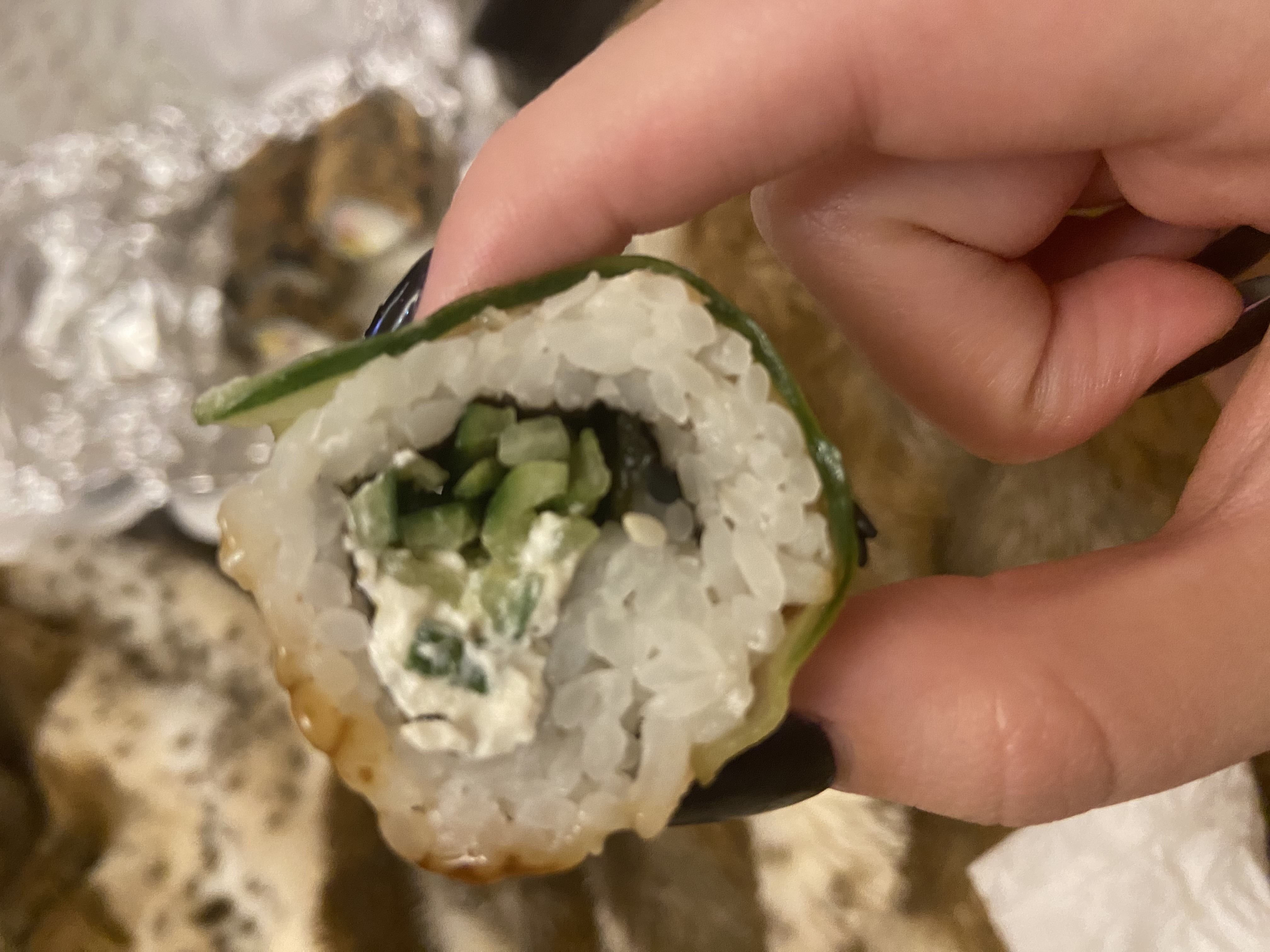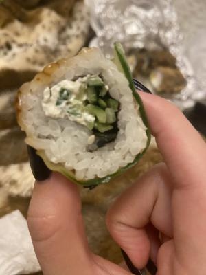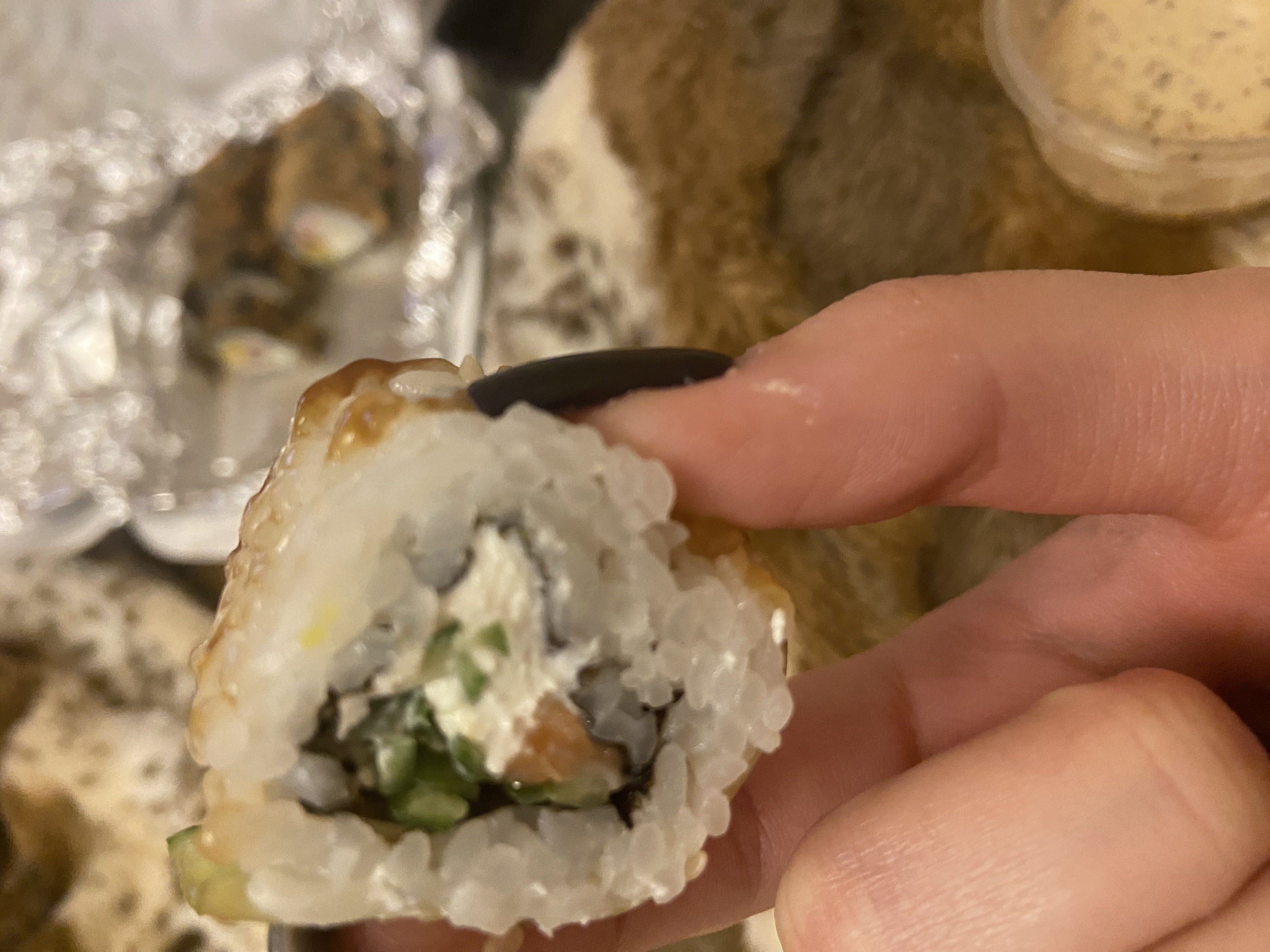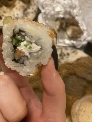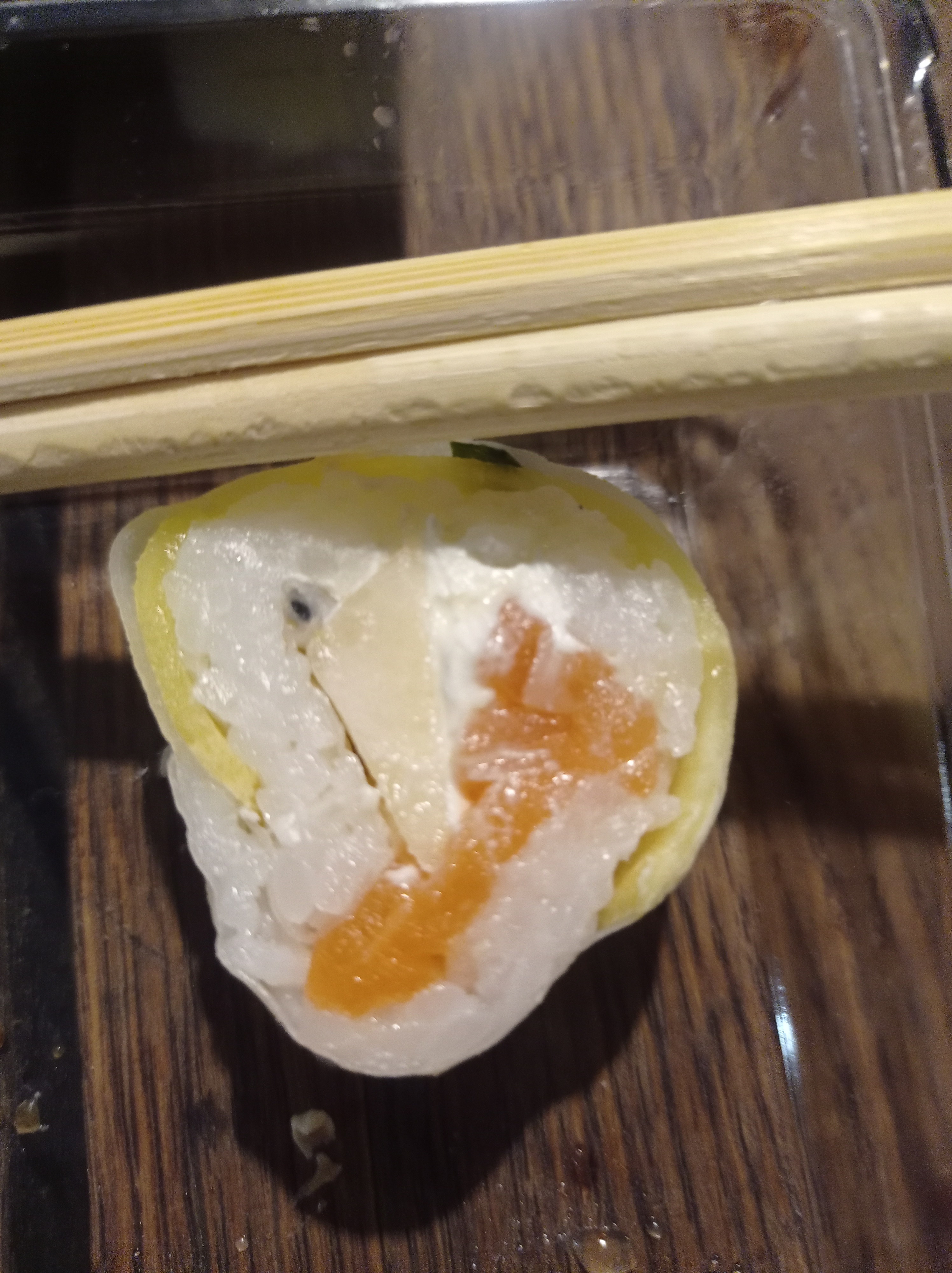 Состав: филе лосося (форели) слабосоленое, авокадо, крем-чиз, рис, нори