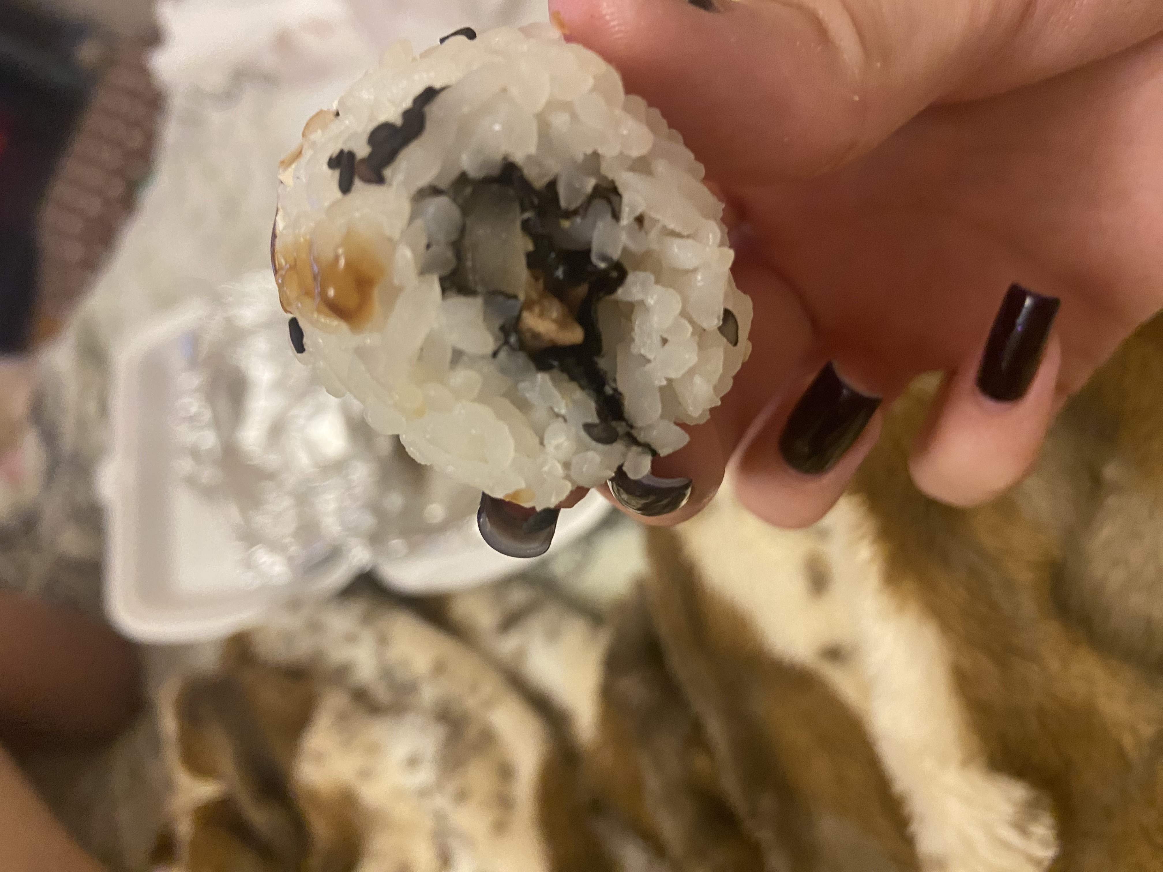 Состав: филе угря, авокадо, огурец, сыр, рис, соус терияки, кунжут