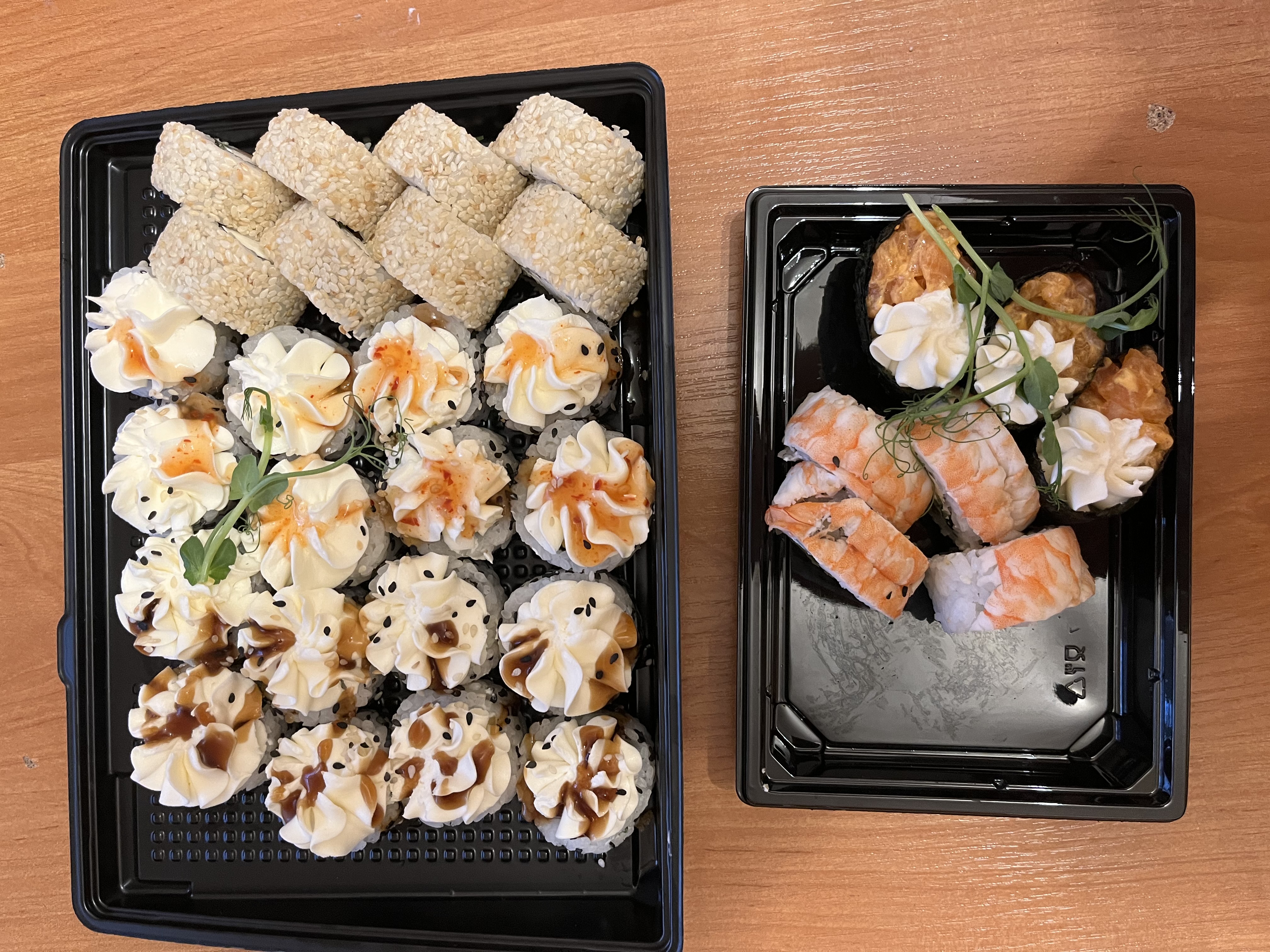 - Стоимость суши-сетов: от 32,90 р. от 58 р.