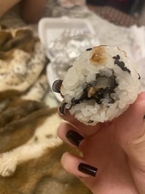 - ролл "Мидии терияки под сырной шапочкой": мидии, морковь терияки, кунжут, крем-сыр, соус терияки, нори, рис - 8 шт.