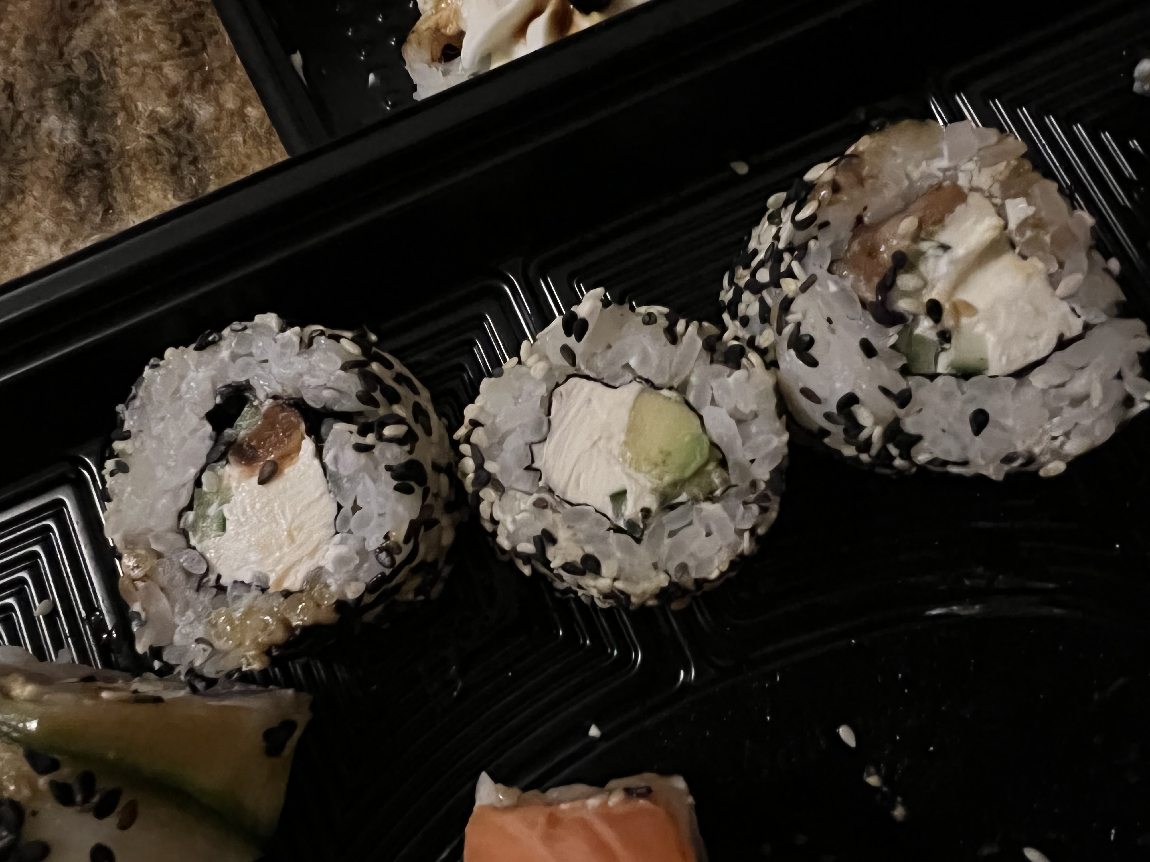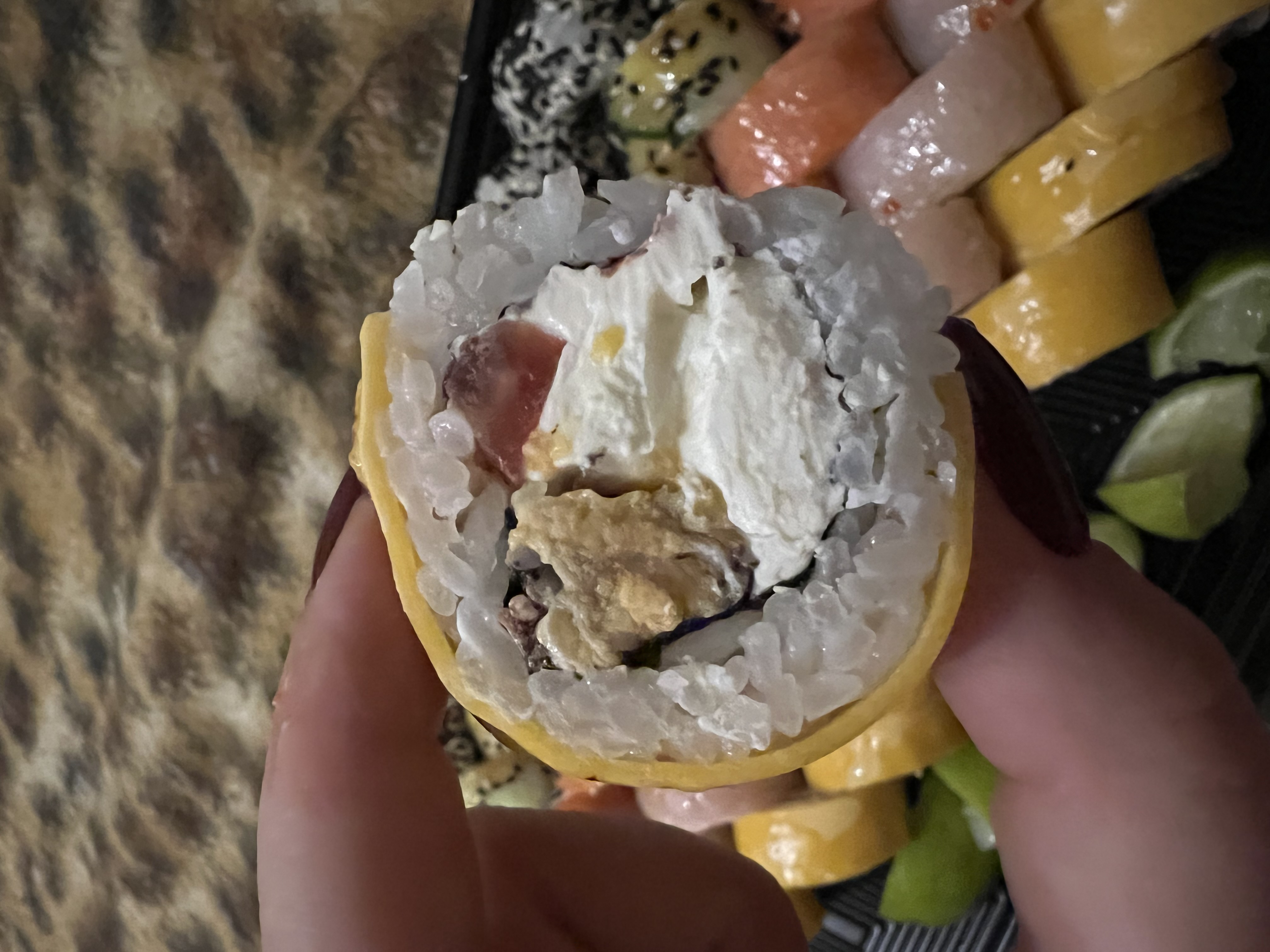 Состав: филе лосося (форели) слабосоленое, авокадо, крем-чиз, рис, нори