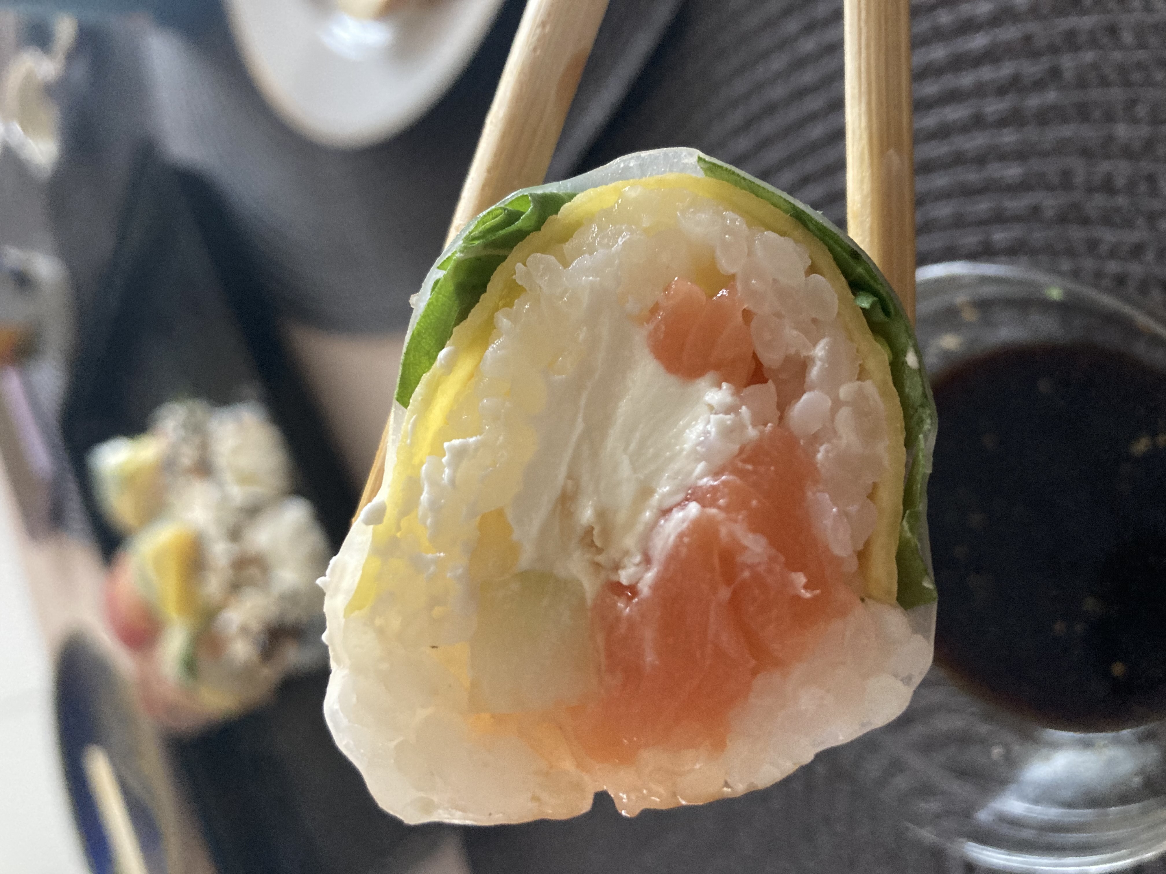 Состав: филе лосося (форели) слабосоленое, авокадо, крем-чиз, рис, нори