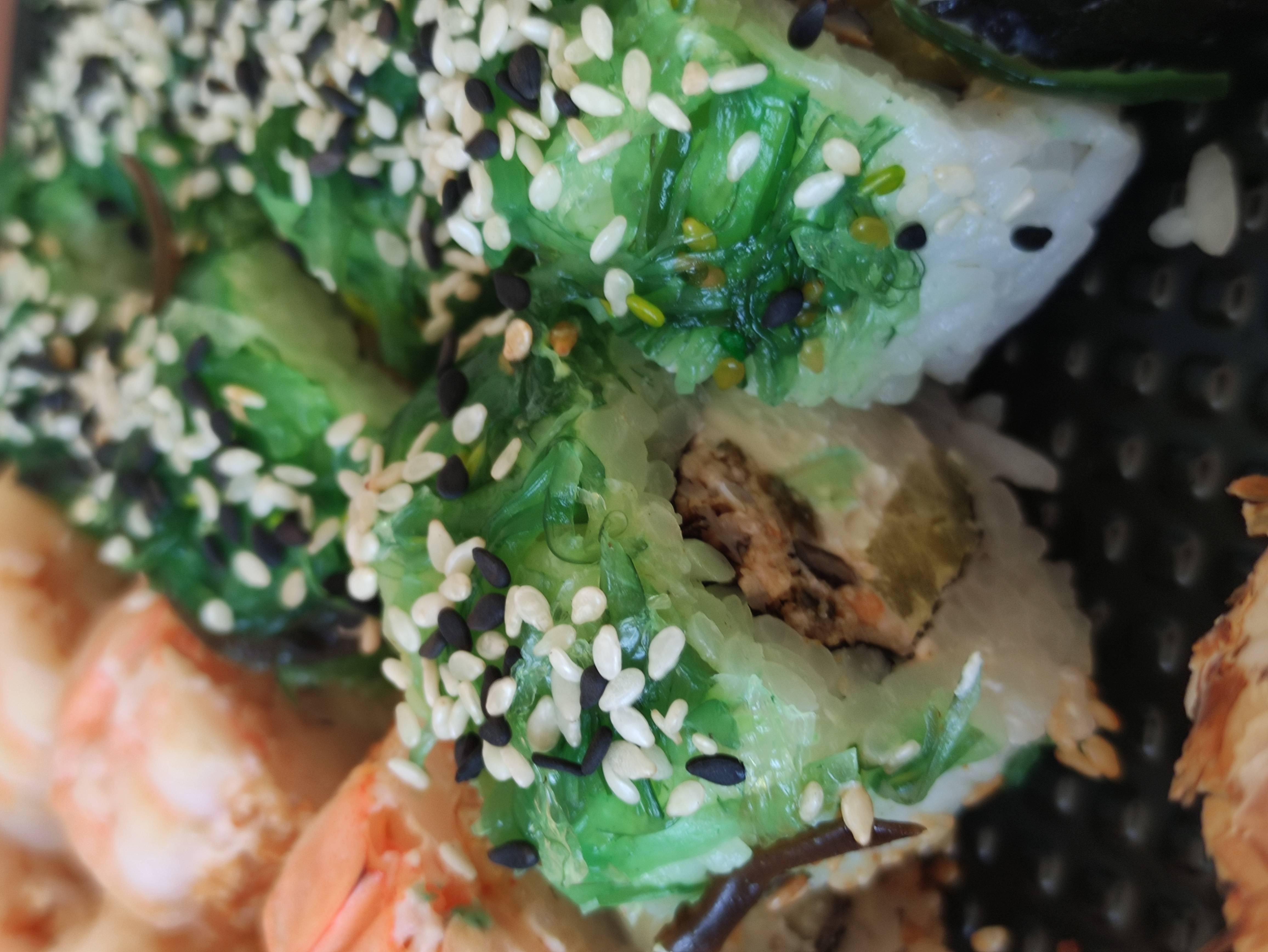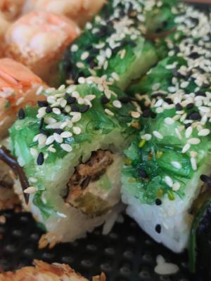 - ролл "Грин Эби Кроунинг": креветка тигровая, краб-микс, чука-салат, сыр, кунжут, нори, рис - 8 шт.
