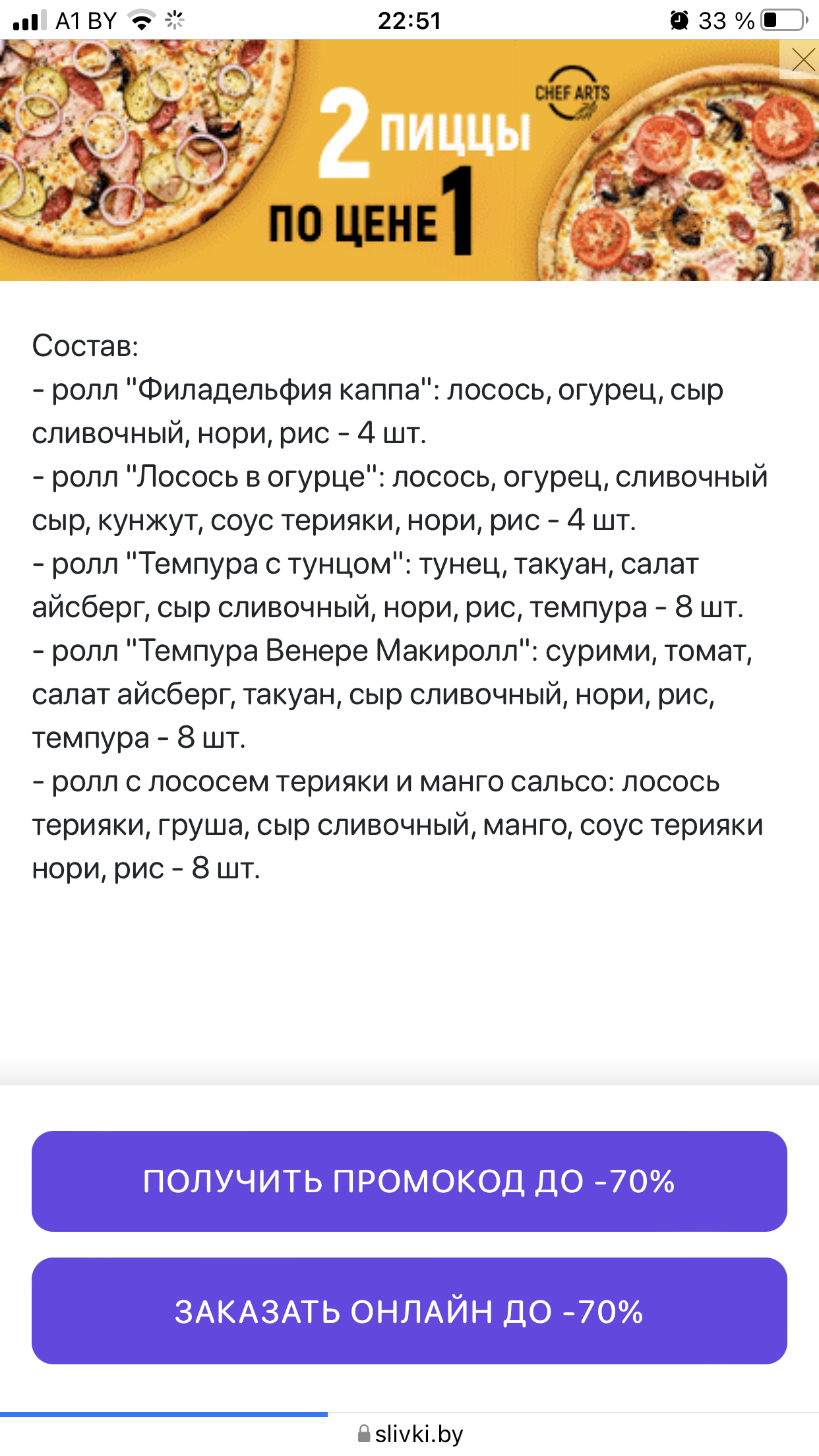 - Промокод дает право на скидку до 61% на суши-сеты от "ArtSushi"