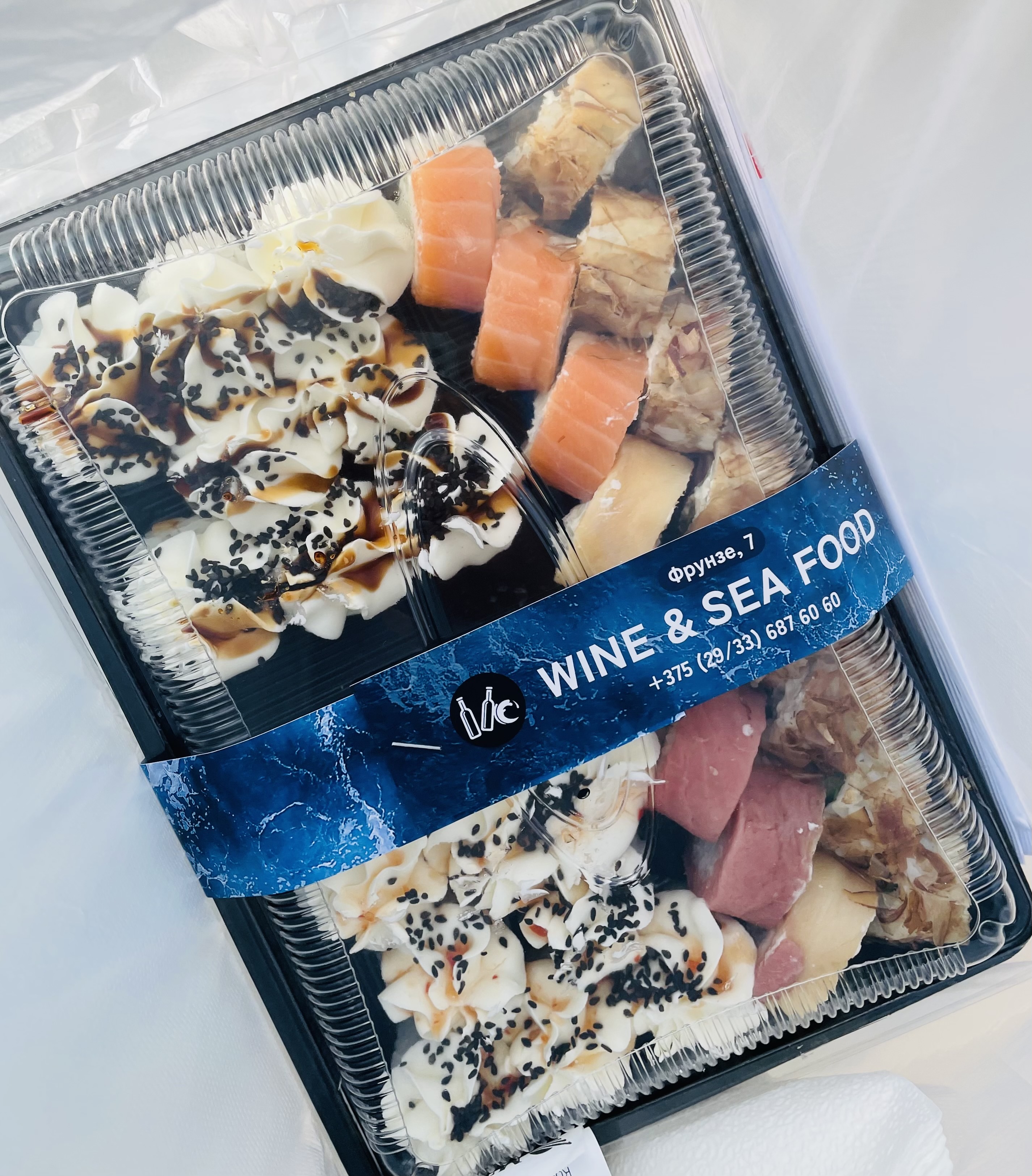 - гарнир: имбирь (25 г), соевый соус (40 мл), васаби (15 г) в подарок!