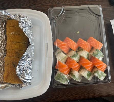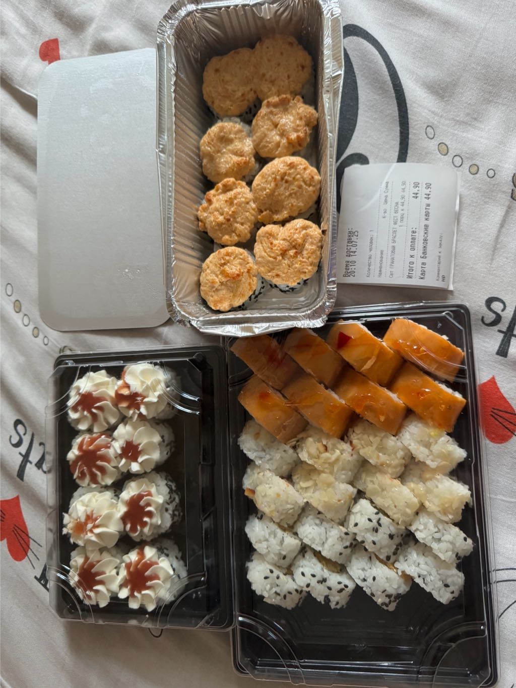 Все было очень вкусное, свежее, хорошее соотношение рыбы и риса!)