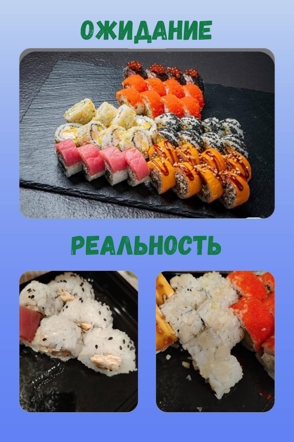 Сделали сегодня заказ через сливки, сет выглядел непривлекательно, блеклая рыба. Суши распадались.