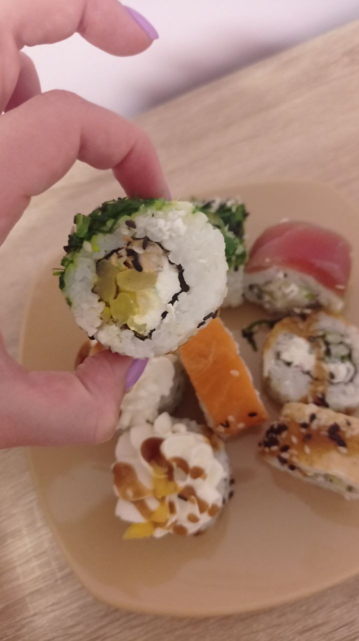 Состав: филе лосося (форели) слабосоленое, авокадо, крем-чиз, рис, нори