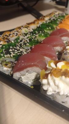 Состав: тунец, такуан, сыр, нори, рис