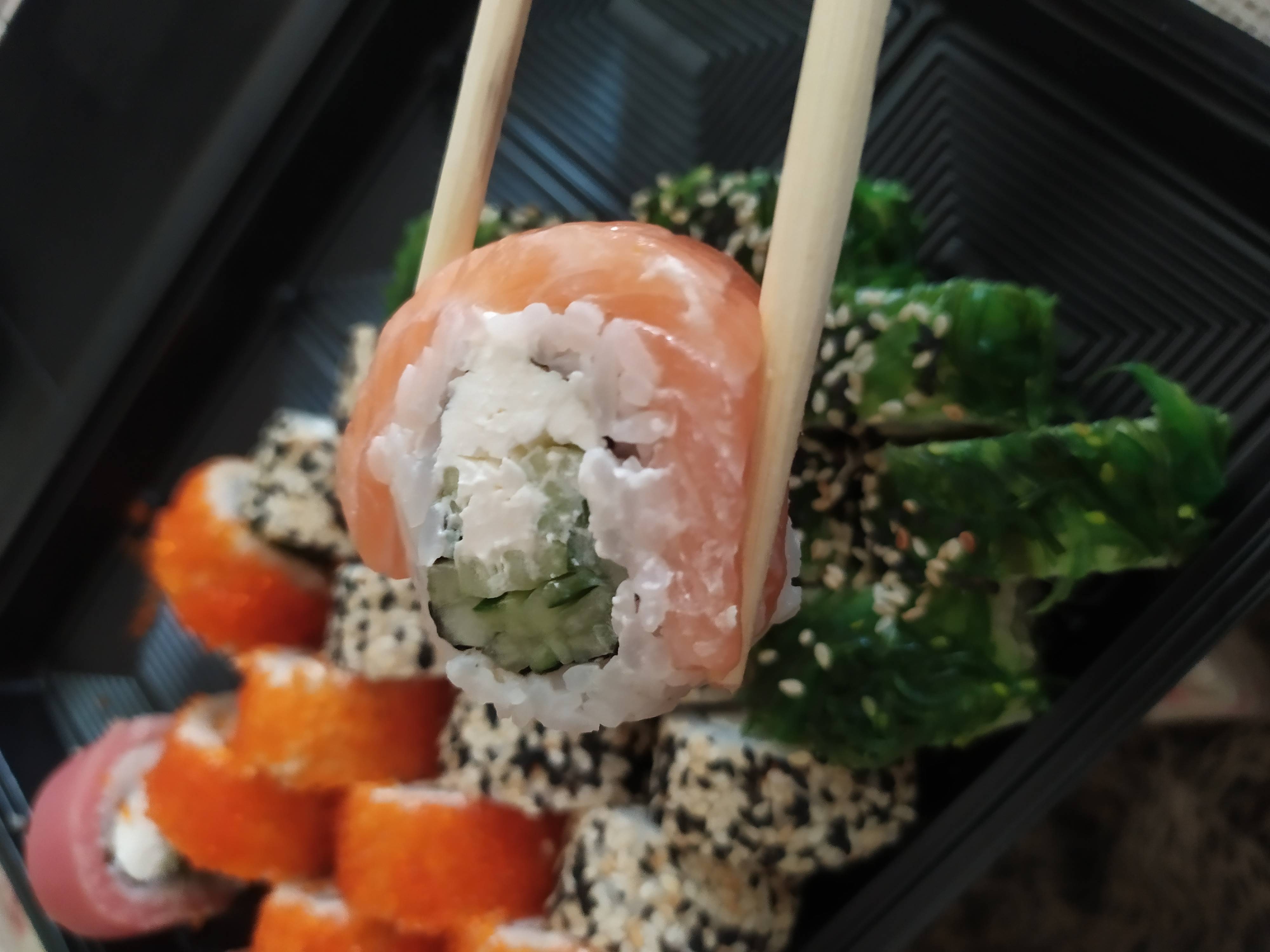 Состав: филе лосося (форели) слабосоленое, авокадо, крем-чиз, рис, нори