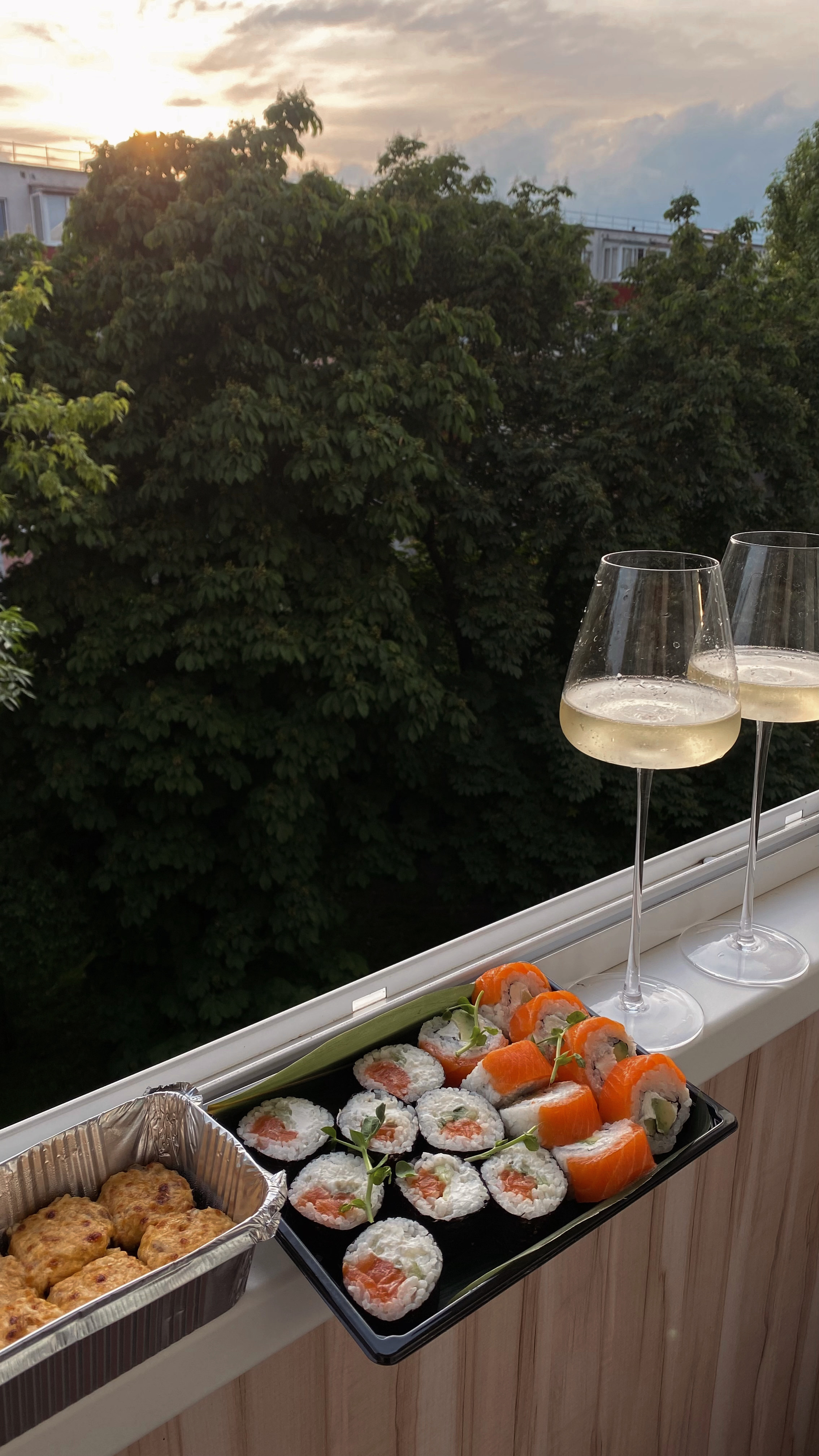 Состав: тунец, такуан, сыр, нори, рис, темпура