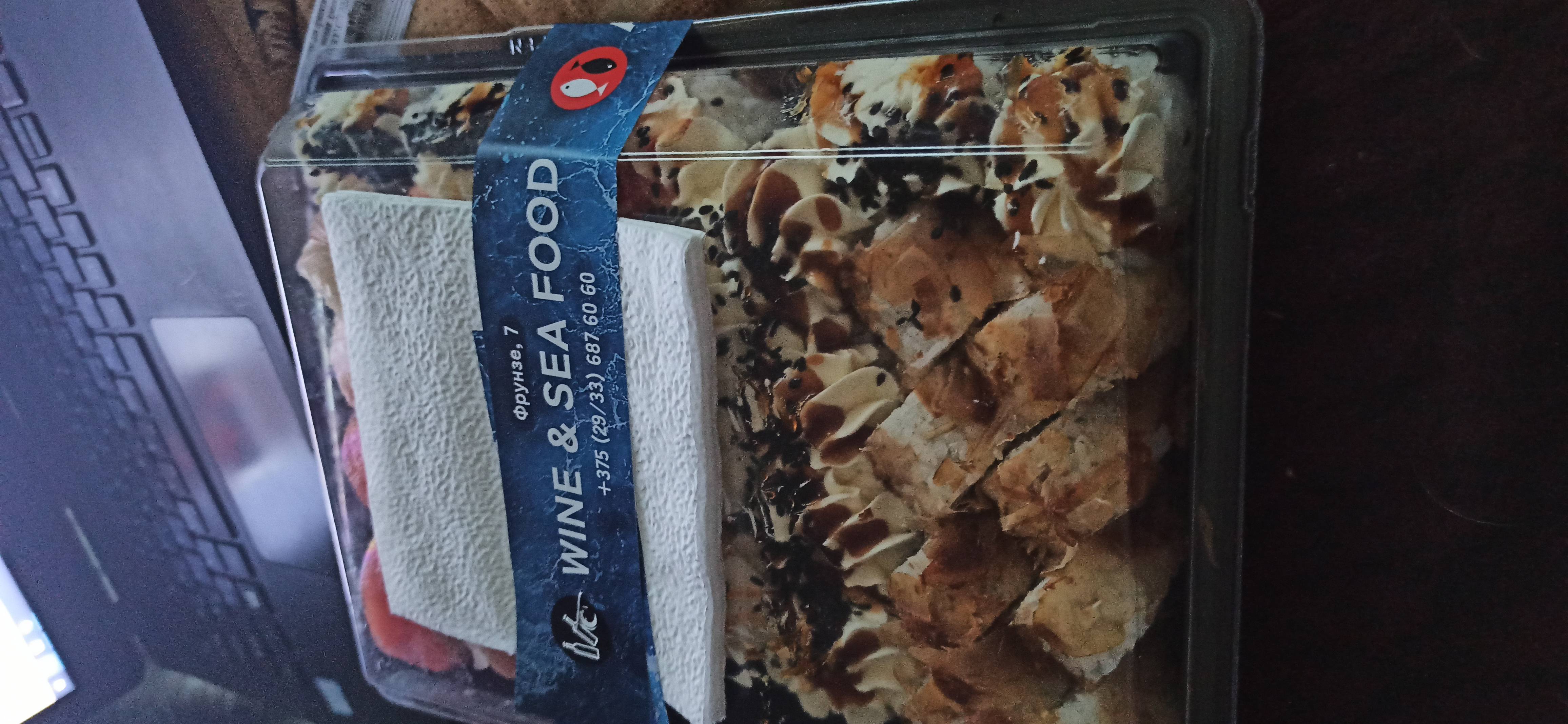 Состав: тунец, такуан, сыр, нори, рис, темпура