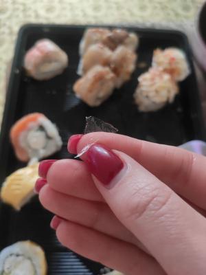 - гарнир: имбирь (25 г), соевый соус (40 мл), васаби (15 г) в подарок!
