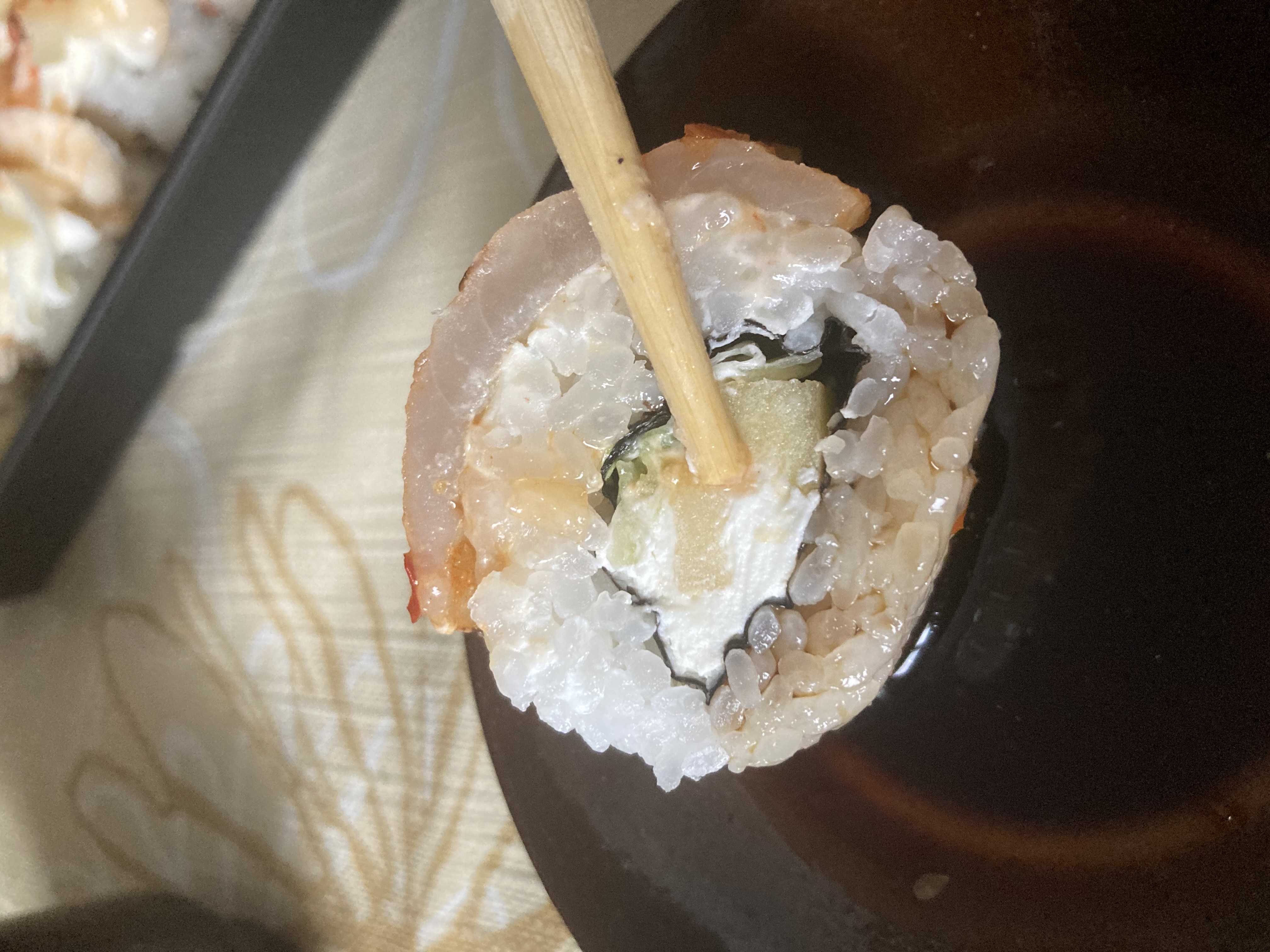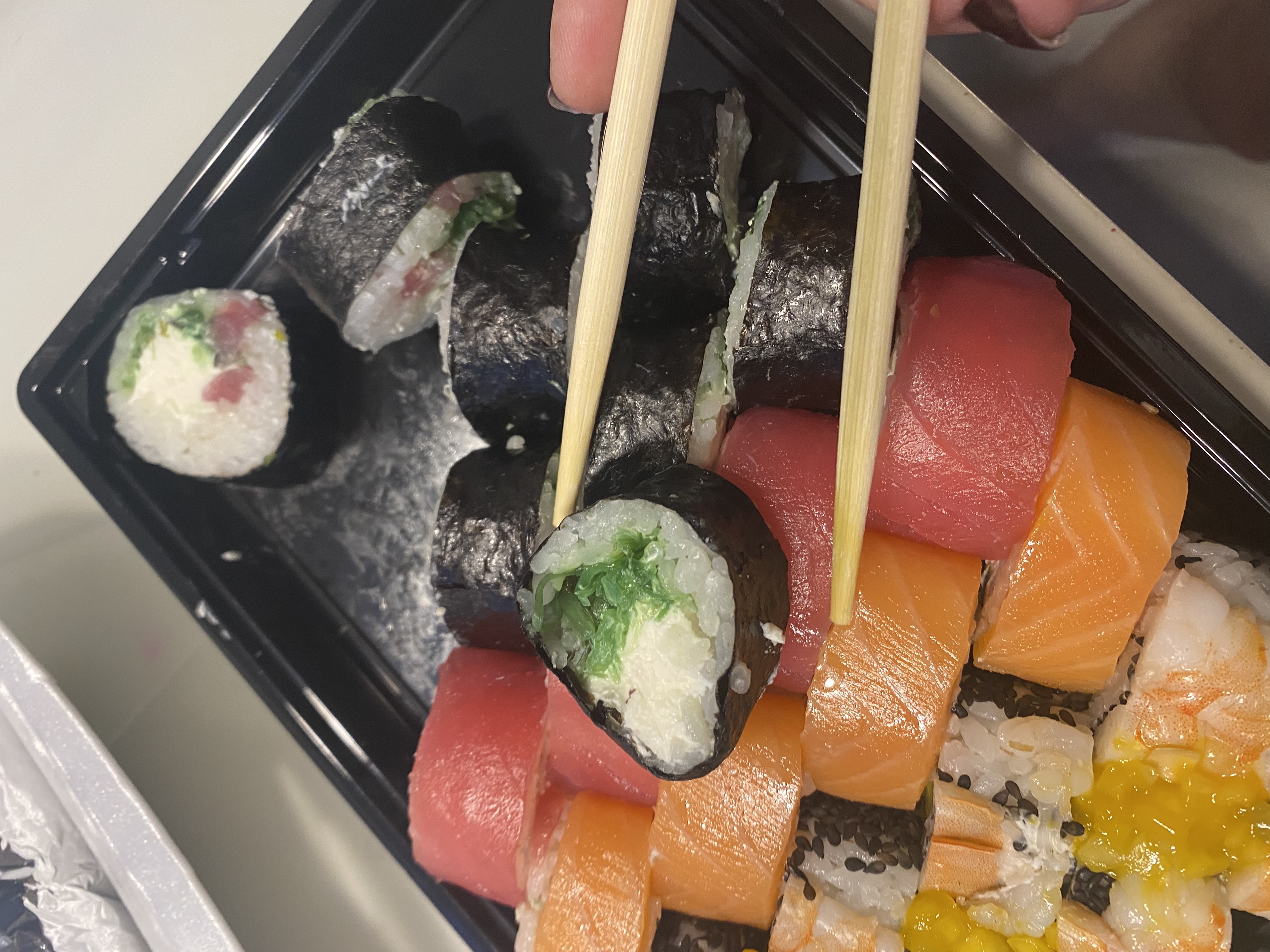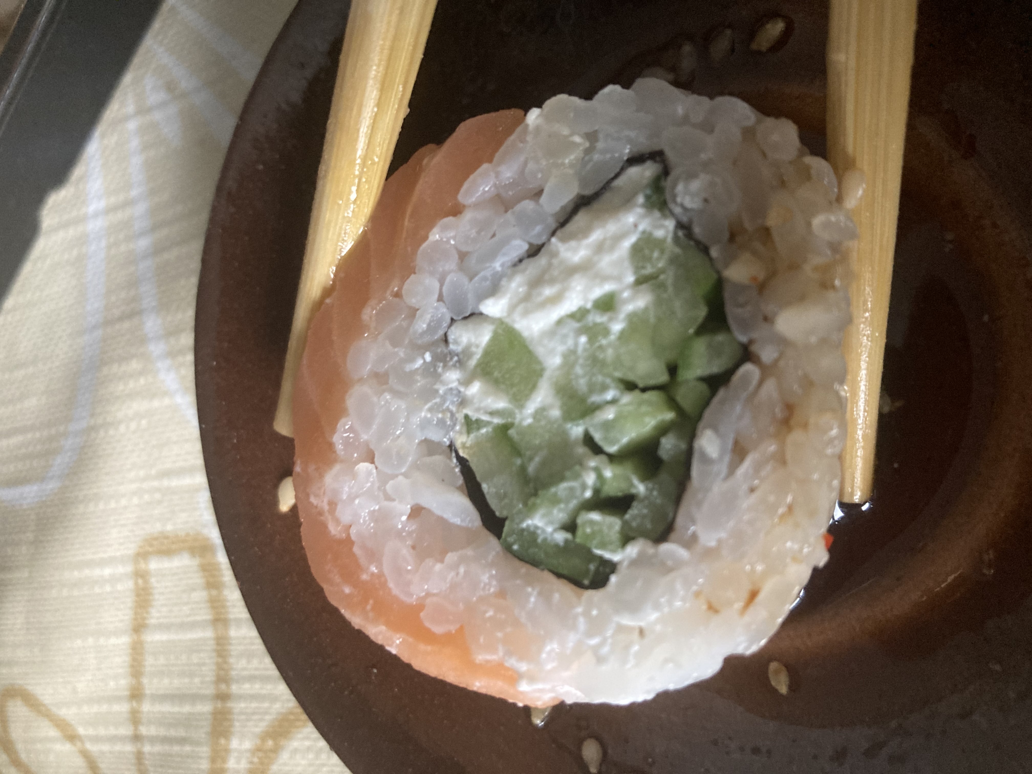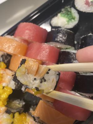 Состав: филе лосося (форели) слабосоленое, авокадо, крем-чиз, рис, нори