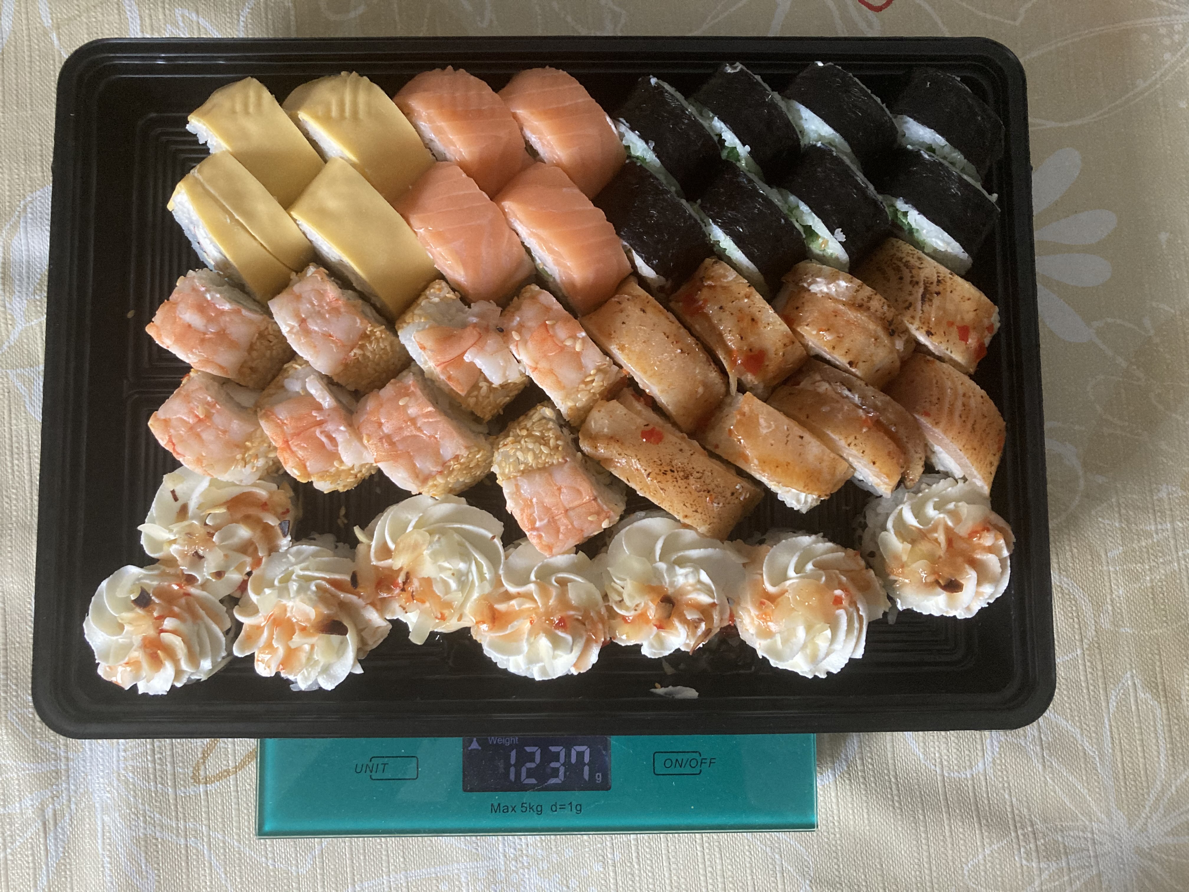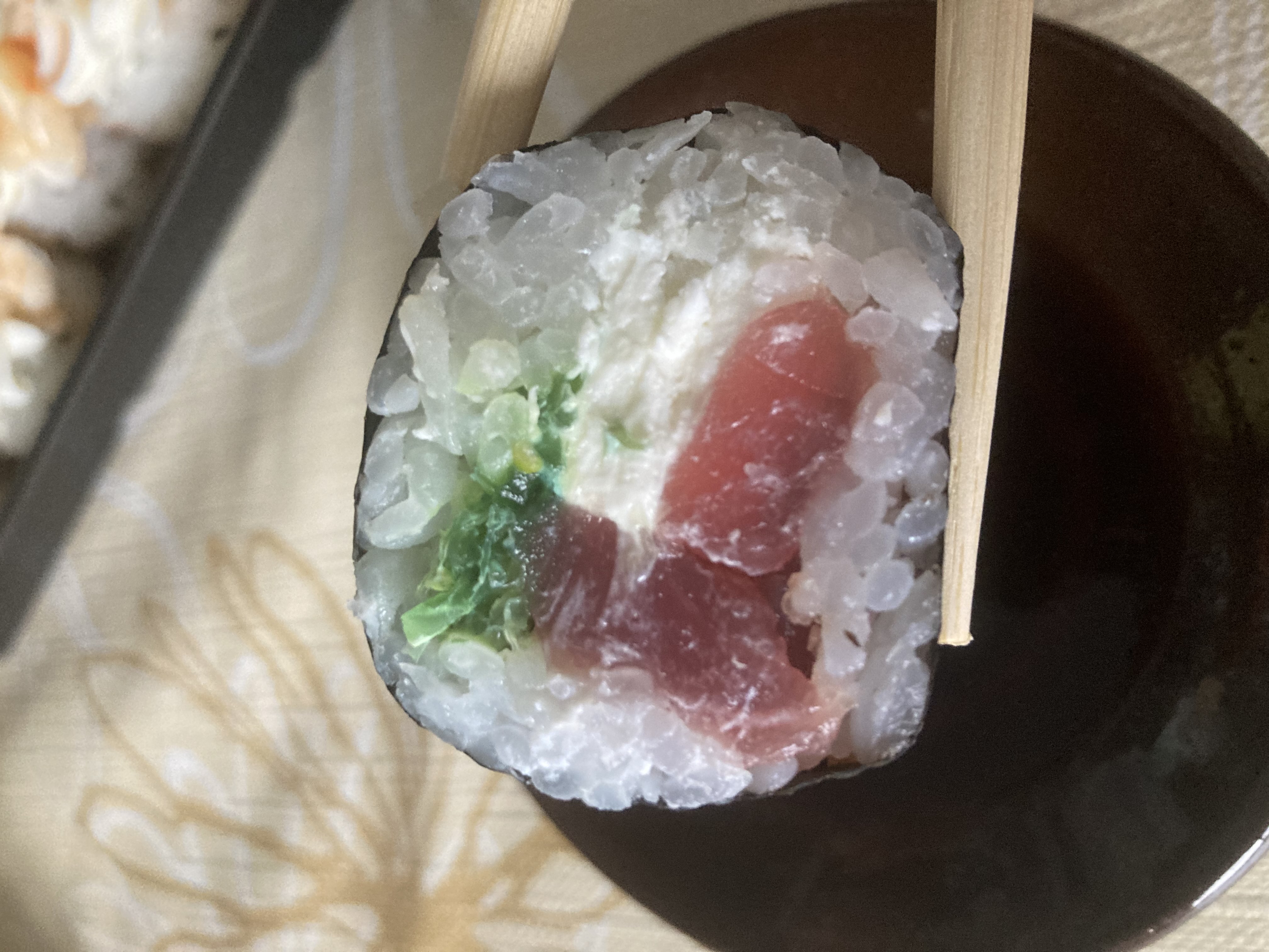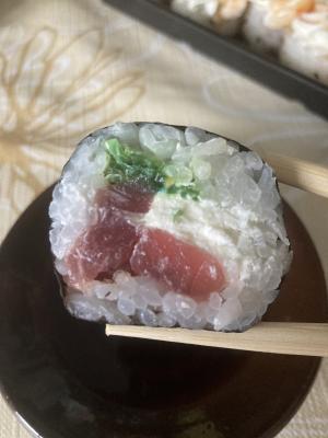 Состав: тунец, такуан, сыр, нори, рис