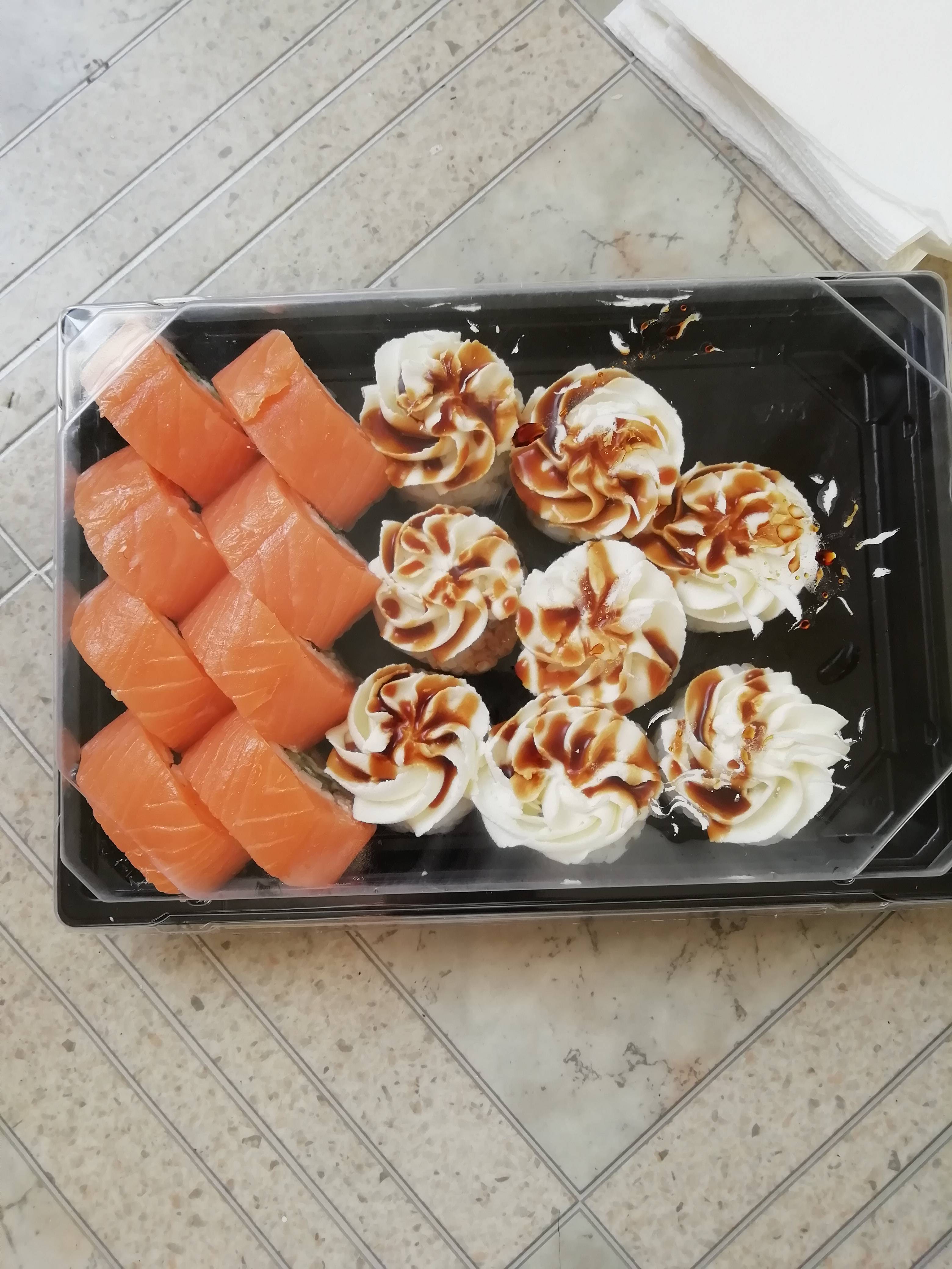 Суши отличные ☺️ доставка вовремя, роллы большие, скручено плотно, очень свежие и вкусные! Мне всё понравилось 🙂