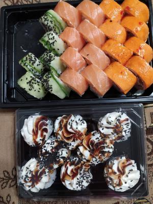- Стоимость суши-сетов: от 32,90 р. от 58 р.