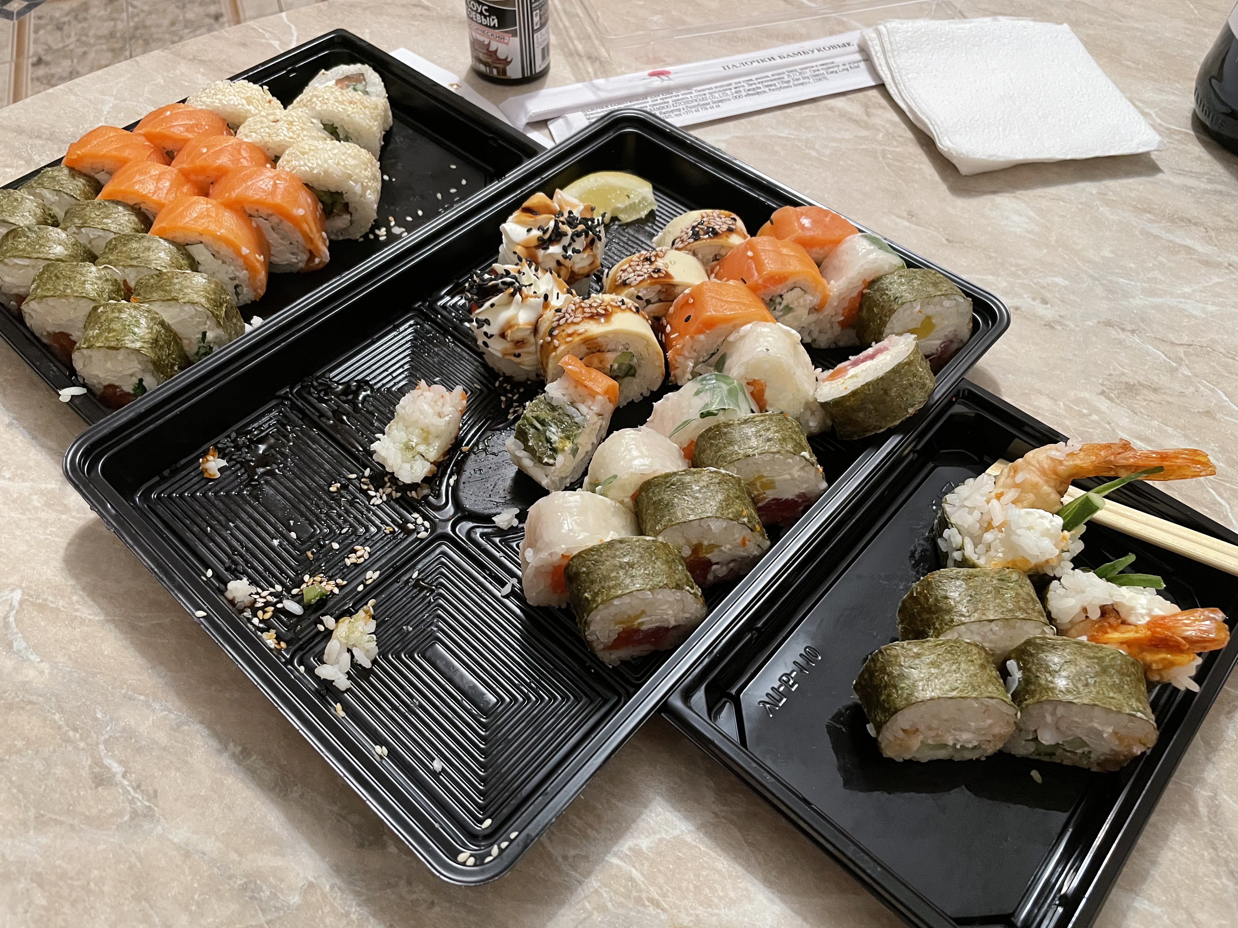 - По предзаказу на 31.12 не принимаются сеты: "Анатолий доплатит", "Анатолий доплатит 3", "Темпура", "Большой", "Гонконг", "Вот Дают Артсуши", "Темпура Микс 2", Сет Двойной, Том ям, Поке, Креветка Темпура, Дог-роллы.