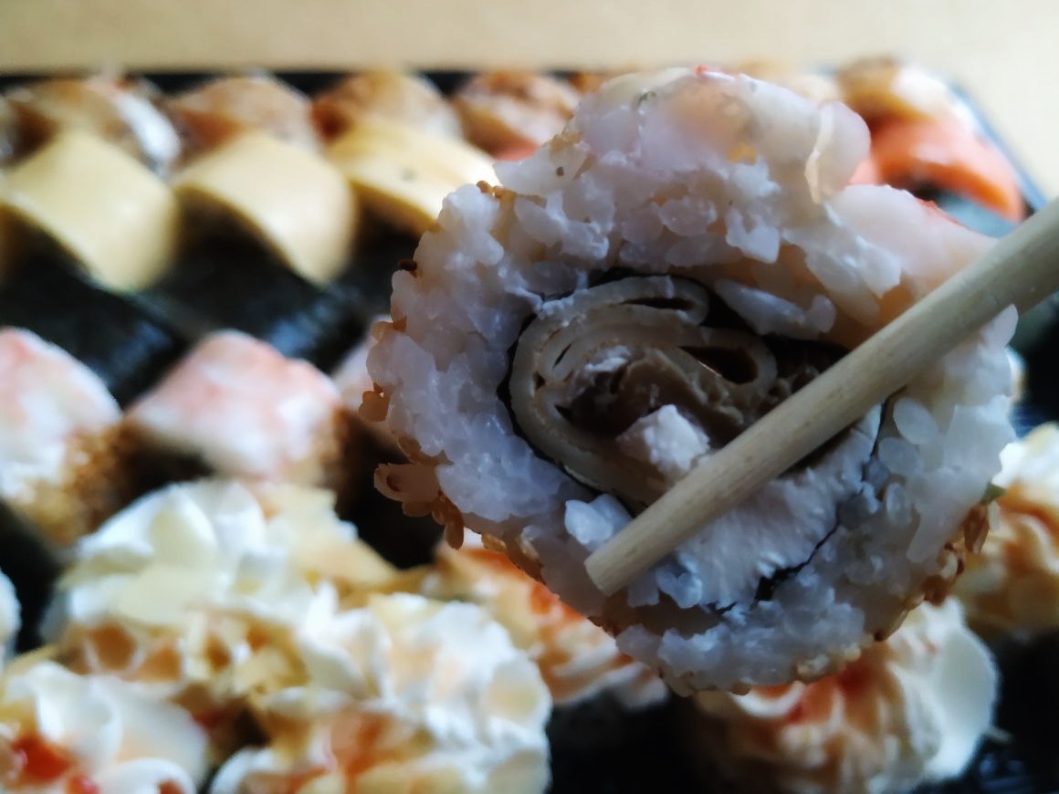 Состав: филе лосося (форели) слабосоленое, авокадо, крем-чиз, рис, нори