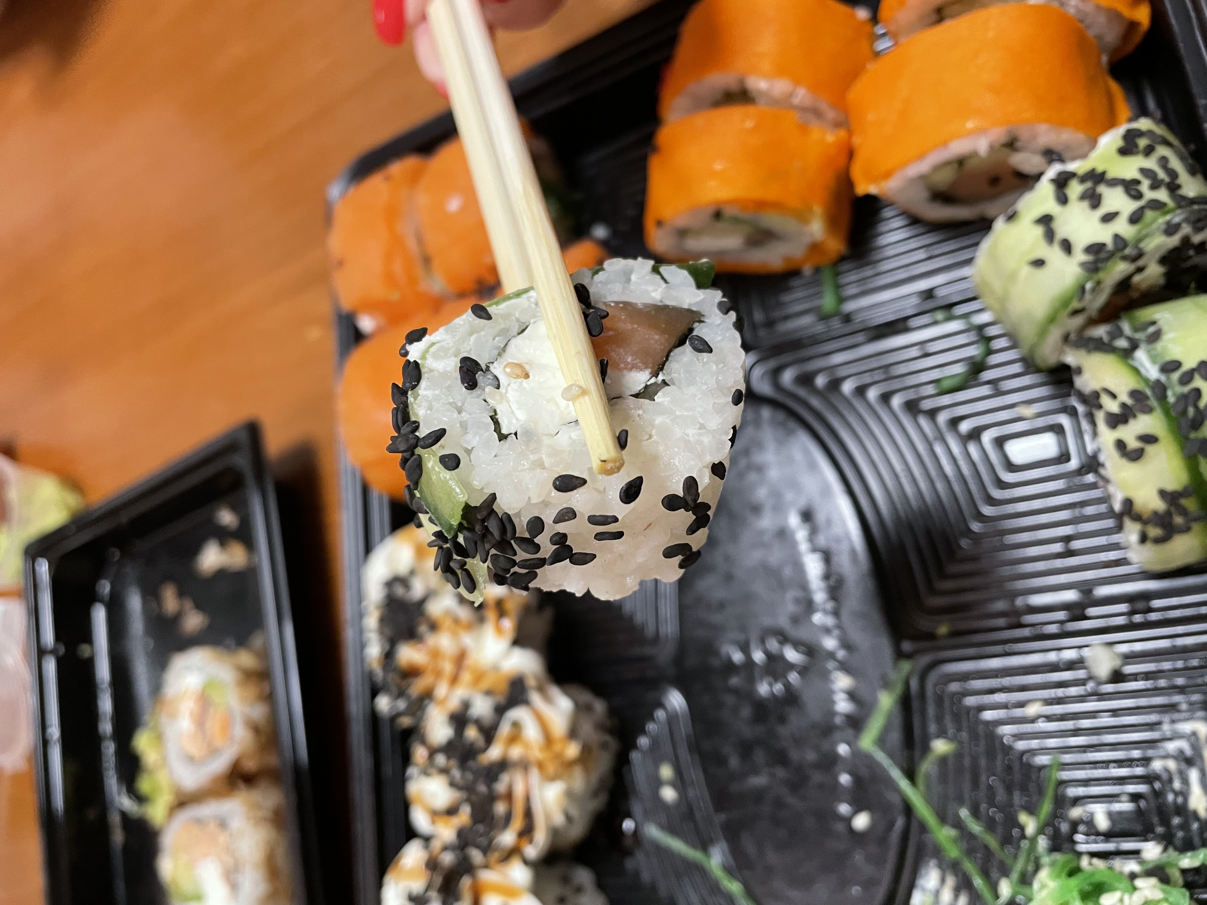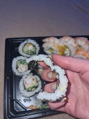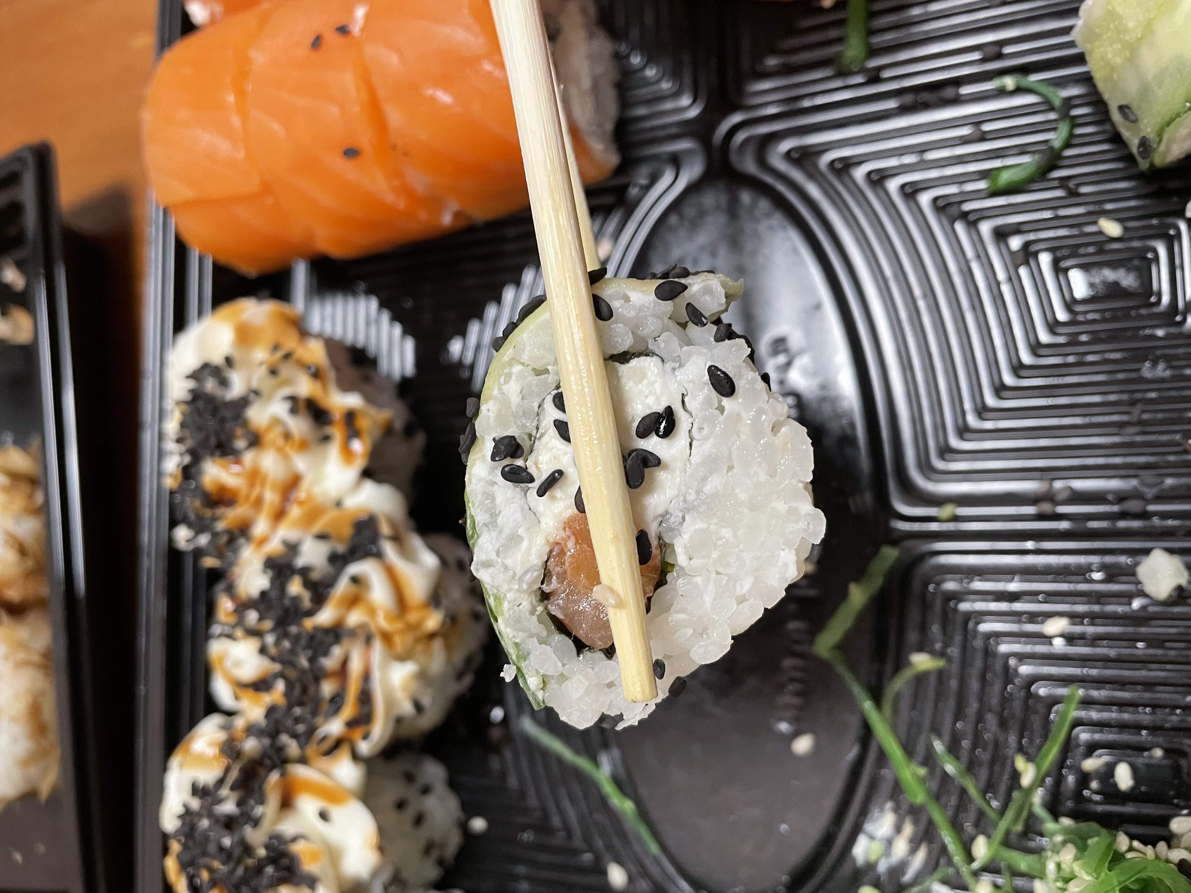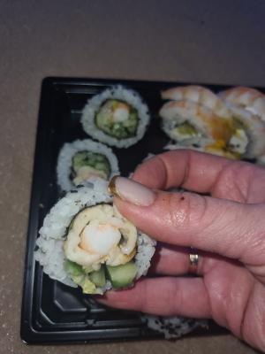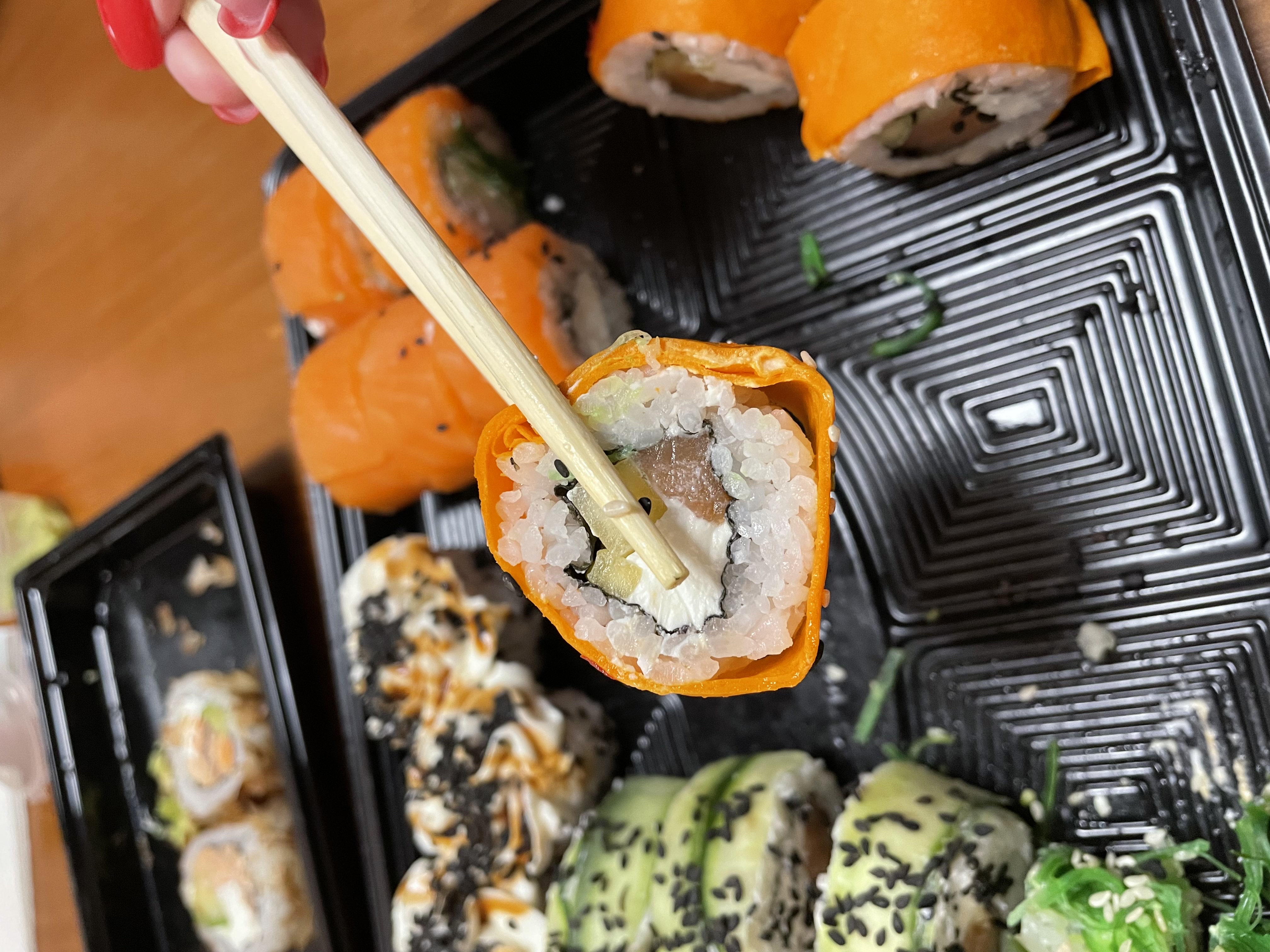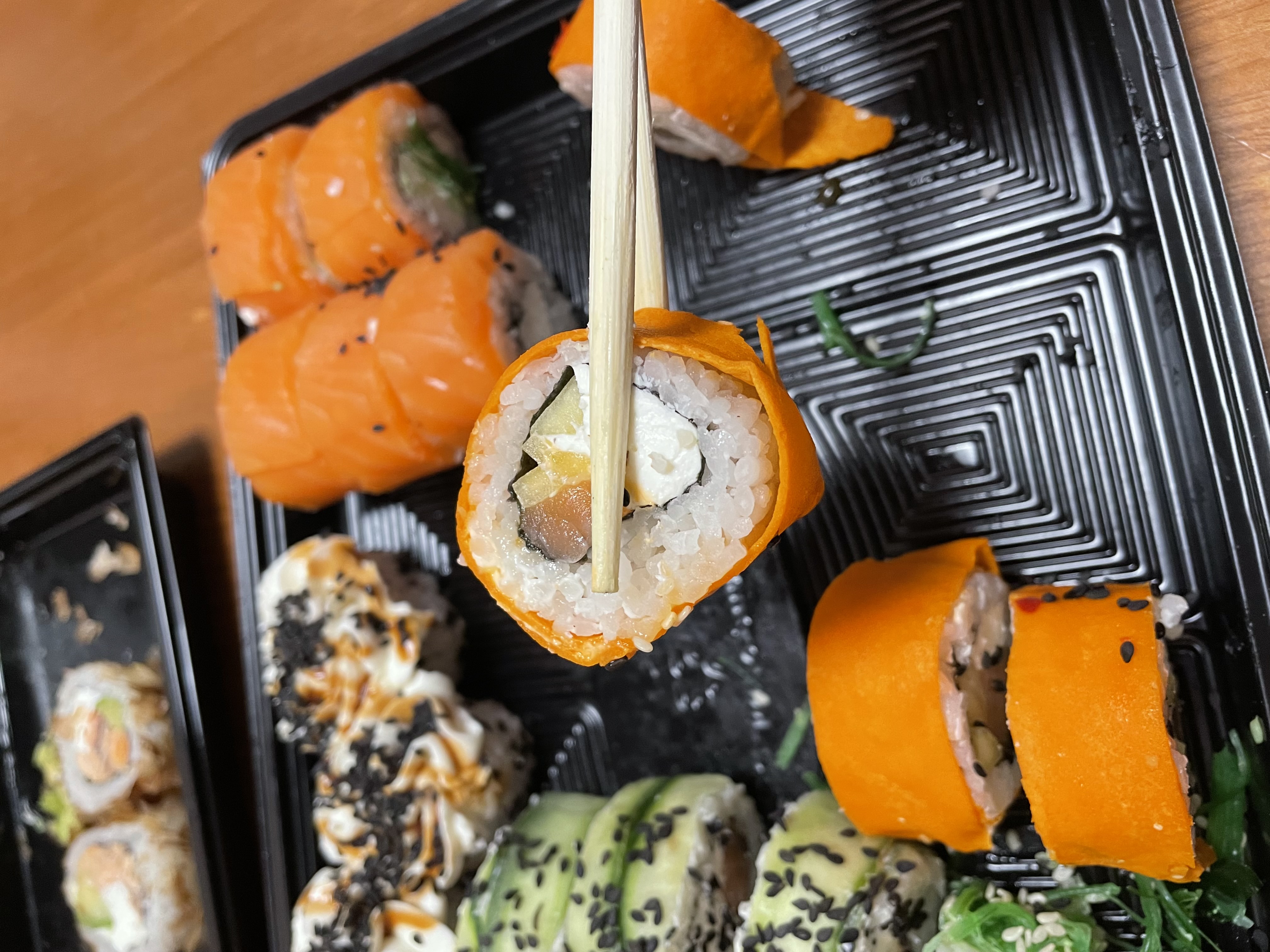 Забирала вчера самовывозом с Кальварийской. Суши были готовы вовремя. Очень свежие, не разваливались, рыбы много. Вкусные и сытные 😍 суперские! Остались с мужем довольны!