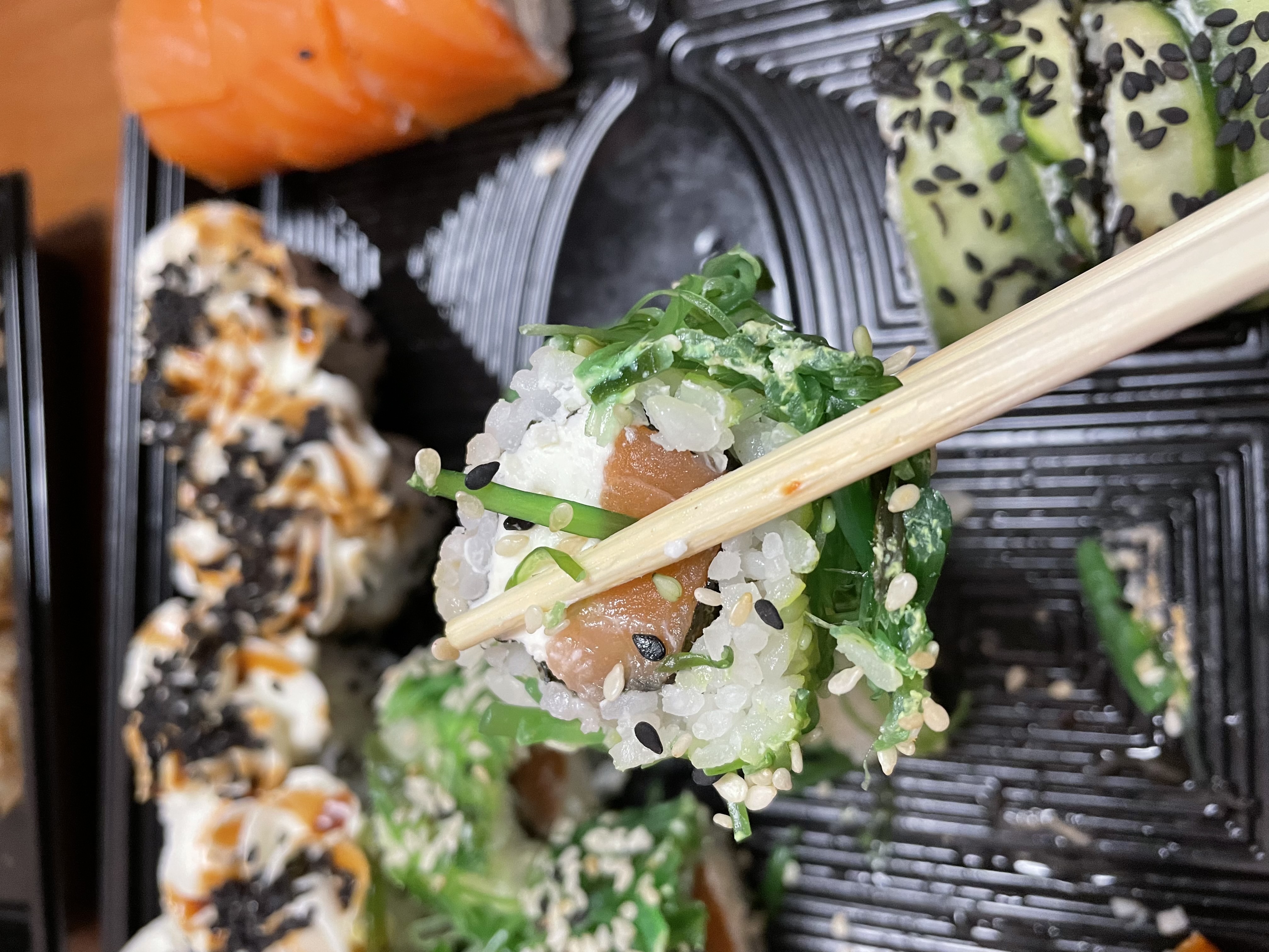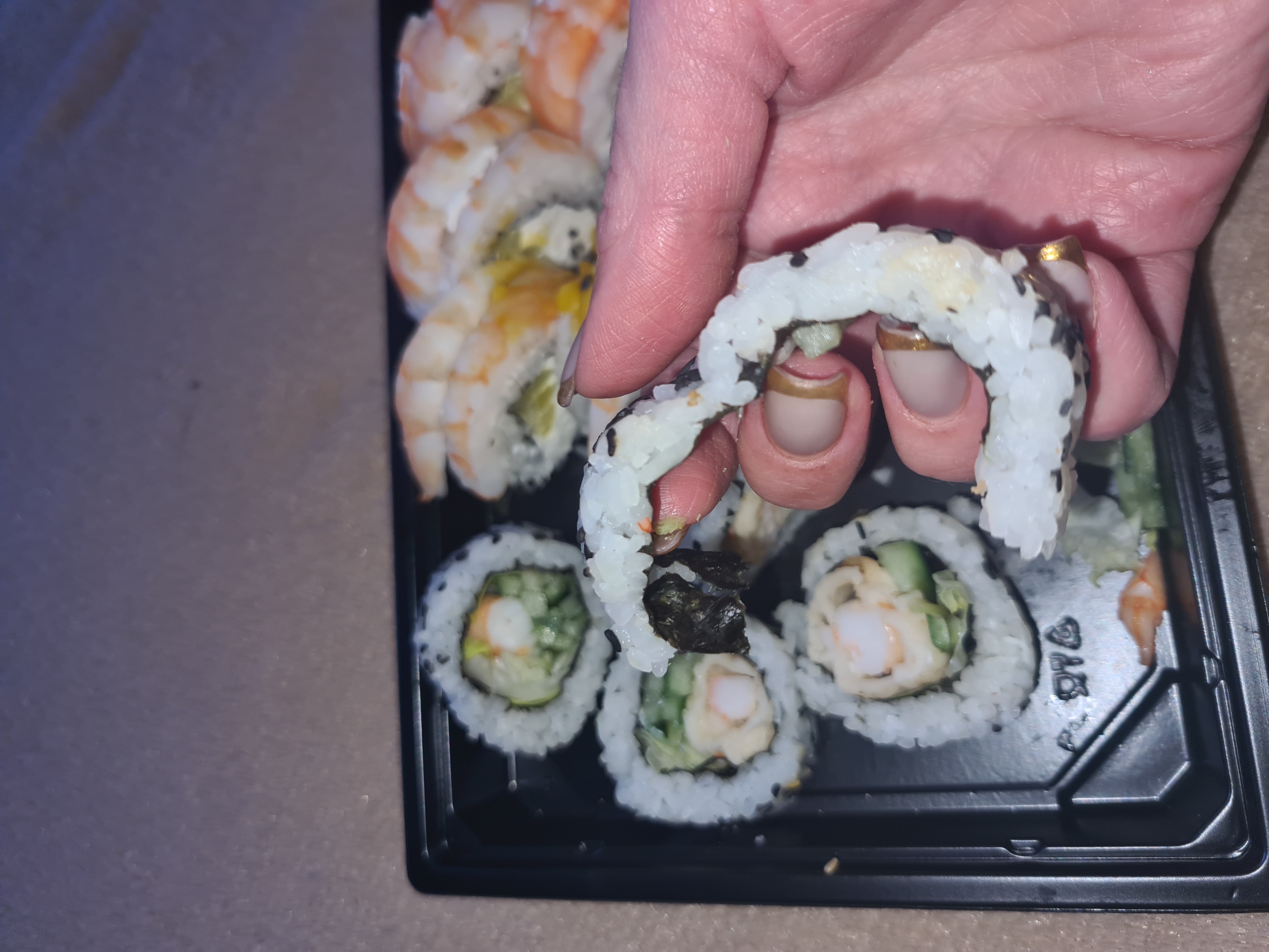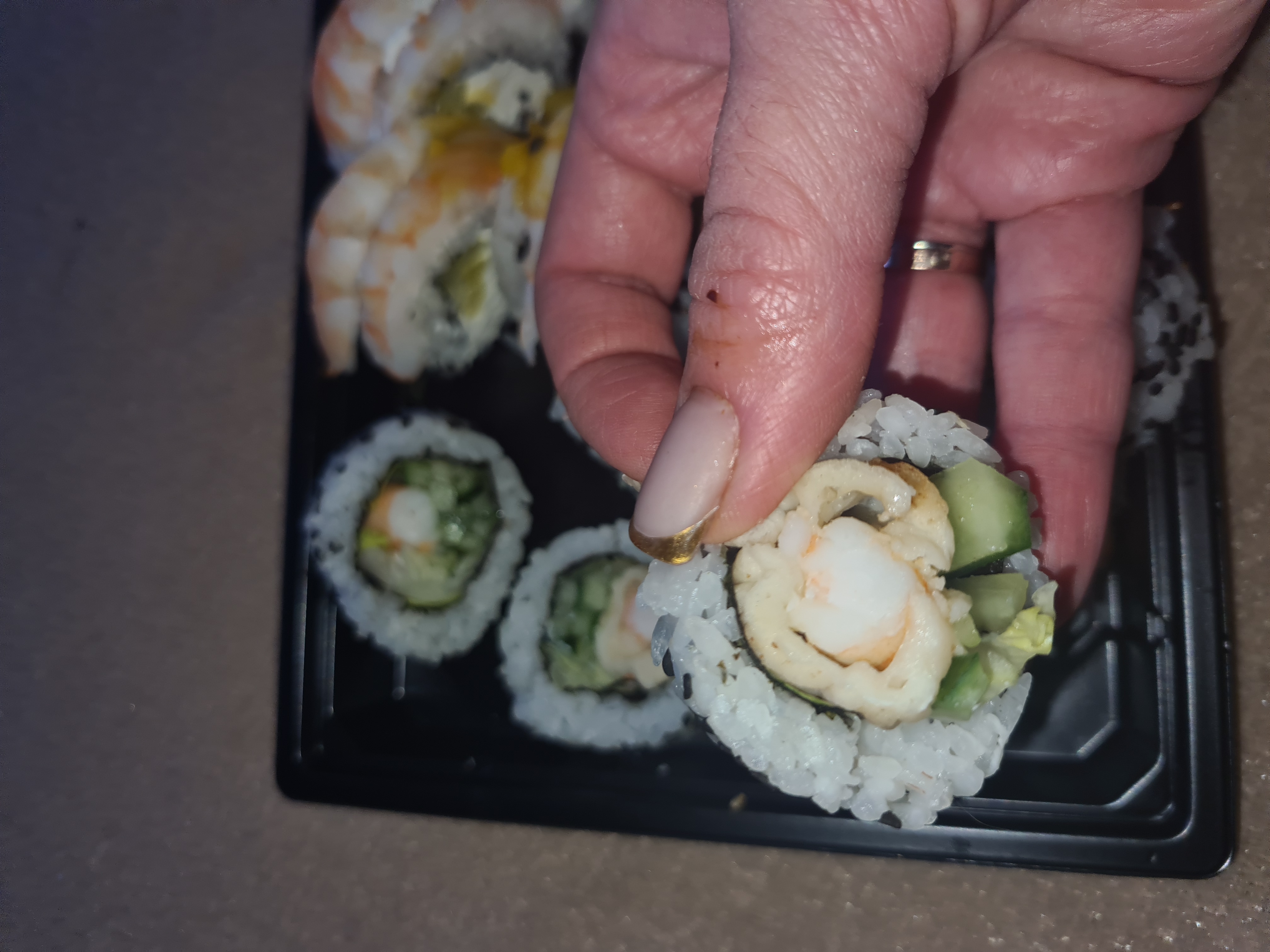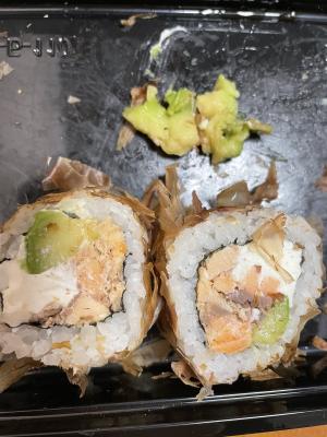 Забирала вчера самовывозом с Кальварийской. Суши были готовы вовремя. Очень свежие, не разваливались, рыбы много. Вкусные и сытные 😍 суперские! Остались с мужем довольны!