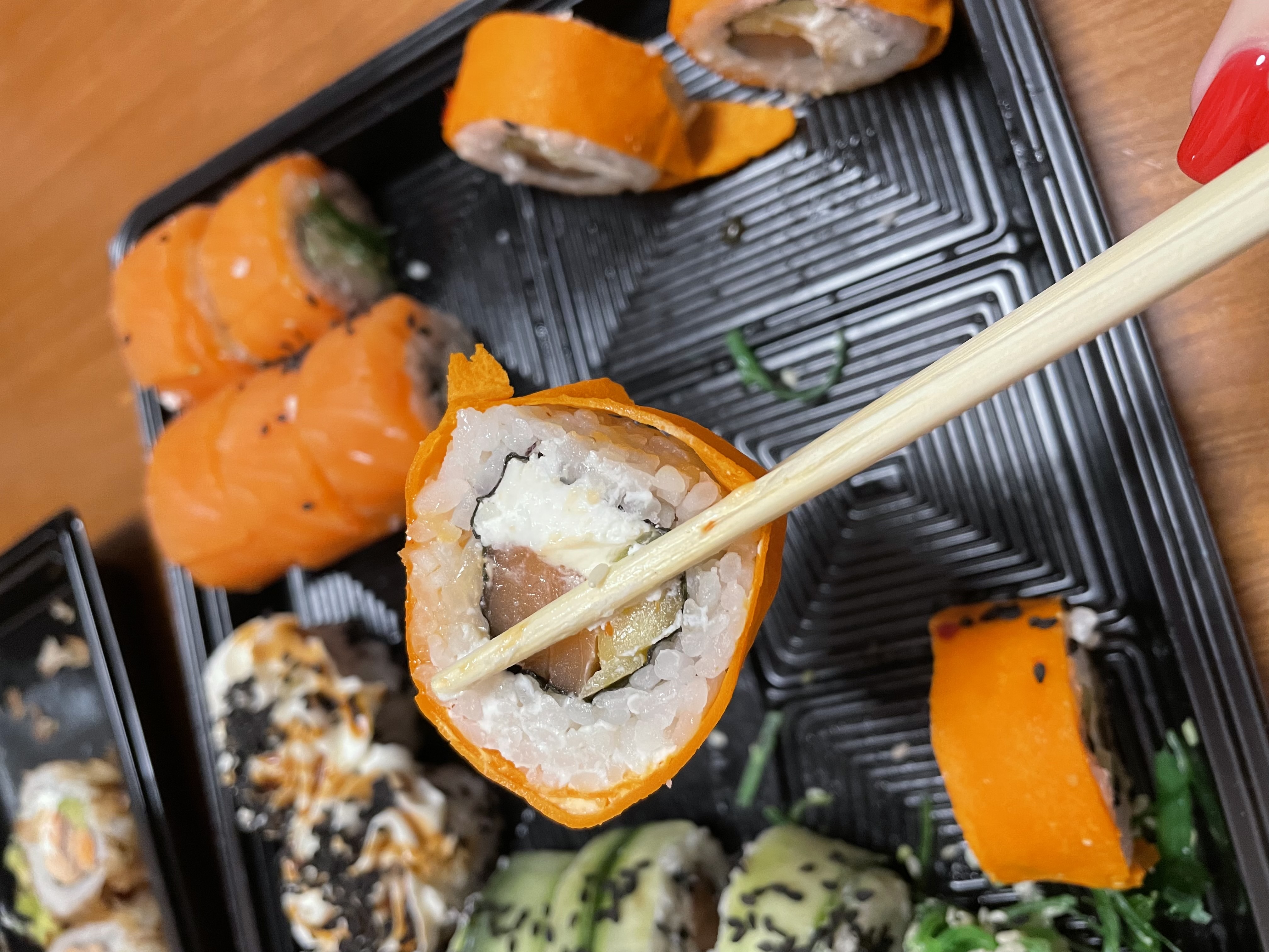 Суши отличные! Большие, начинки много! Все свежее и качественное! 🔥