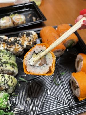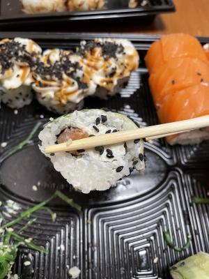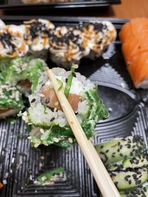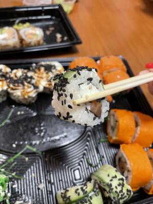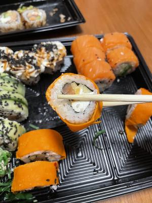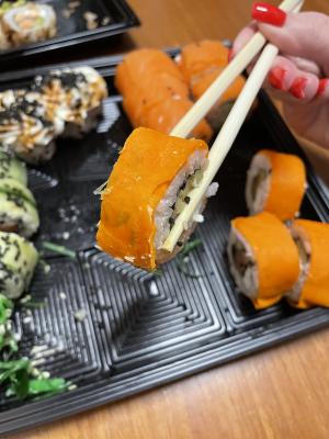 Качественные и вкусные суши 🍣😍 много начинки, свежие, рыба отличная 😋 никаких замечаний ни по вкусу, ни по доставке - привезли вовремя, курьер вежливый, пожелал приятного аппетита) домашние остались довольны, жаль только, что всё оч быстро съели 😅