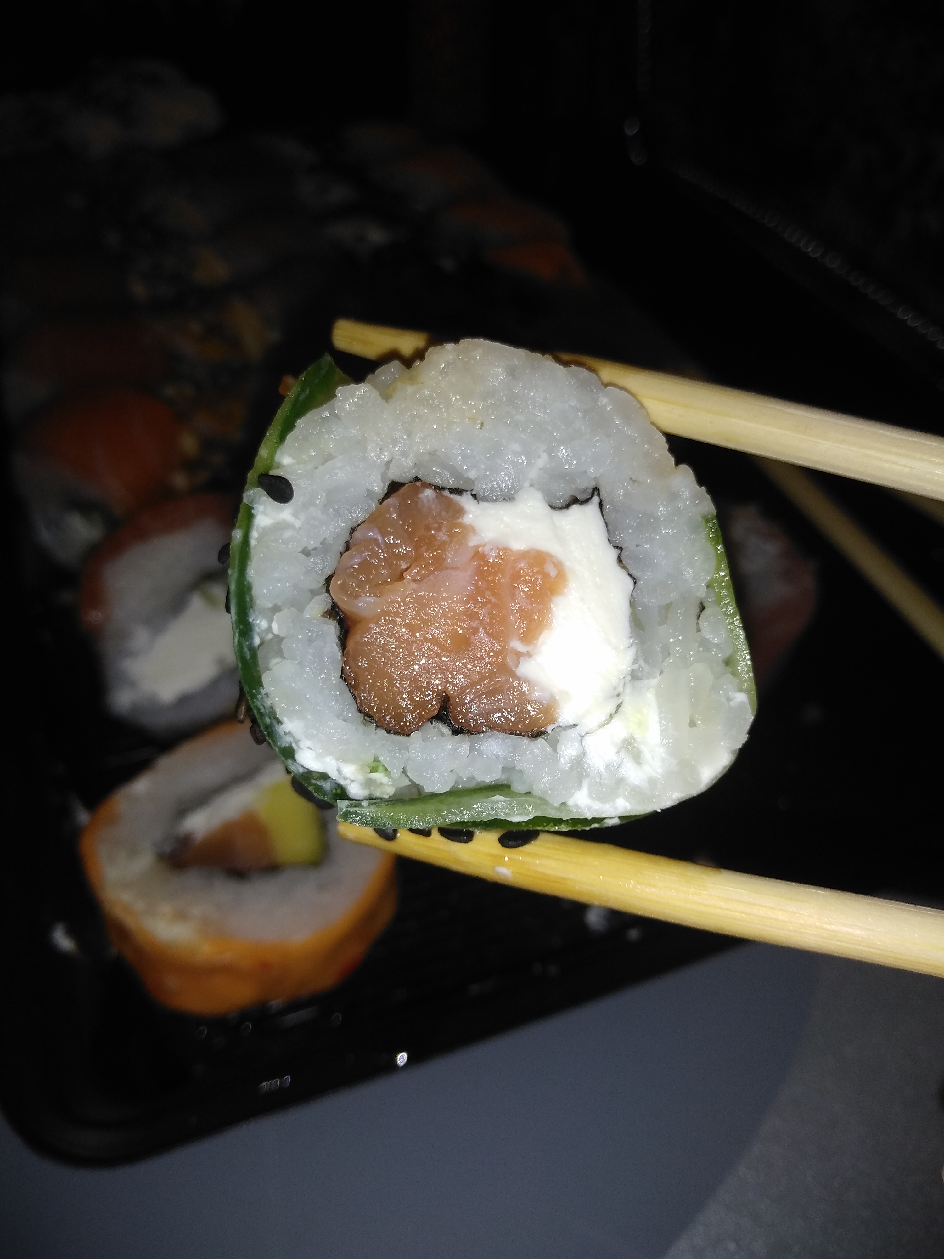 Состав: филе лосося (форели) слабосоленое, авокадо, крем-чиз, рис, нори
