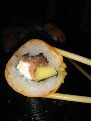 Состав: тунец, такуан, сыр, нори, рис, темпура