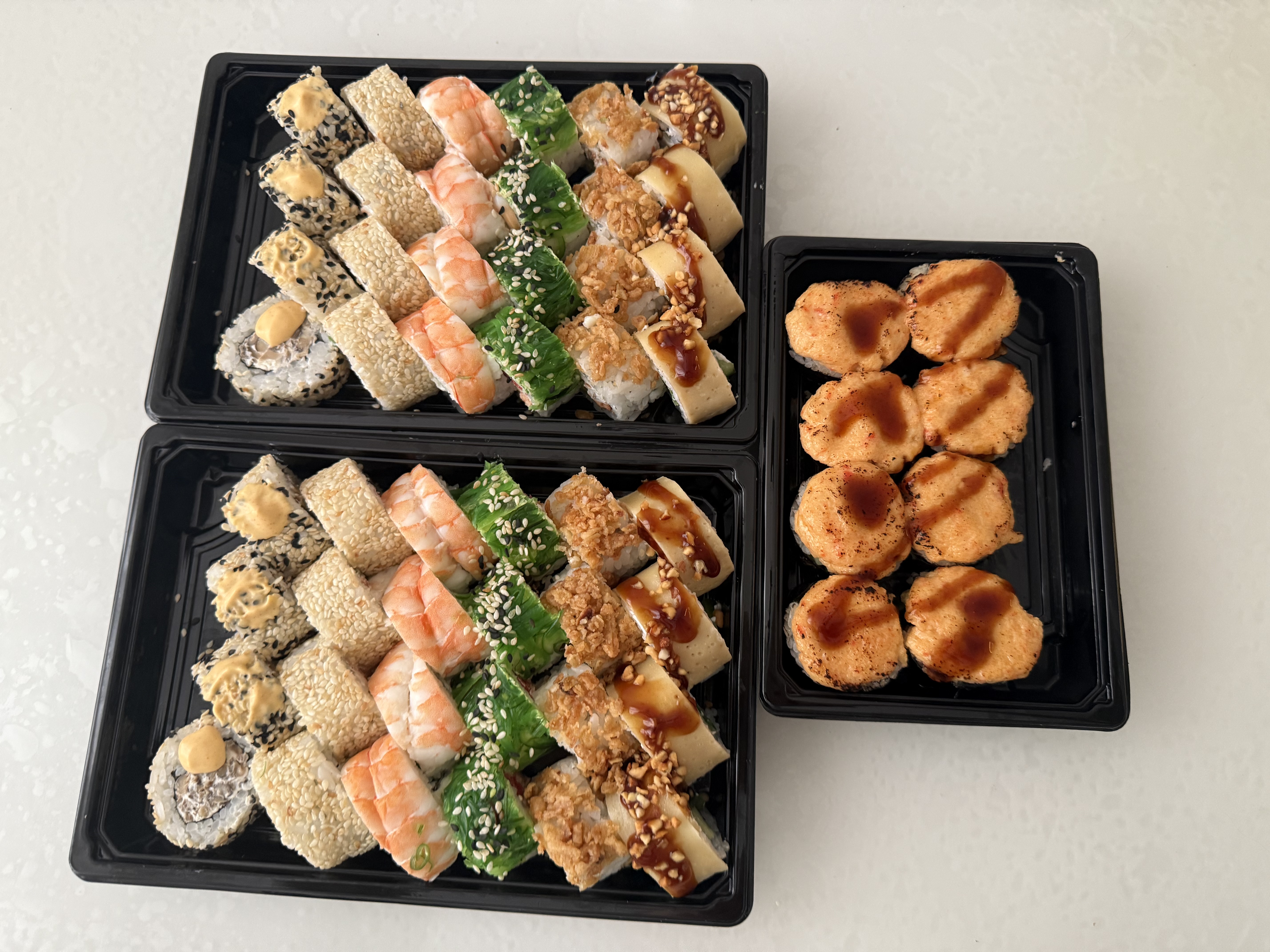 - Стоимость суши-сетов: от 32,90 р. от 58 р.