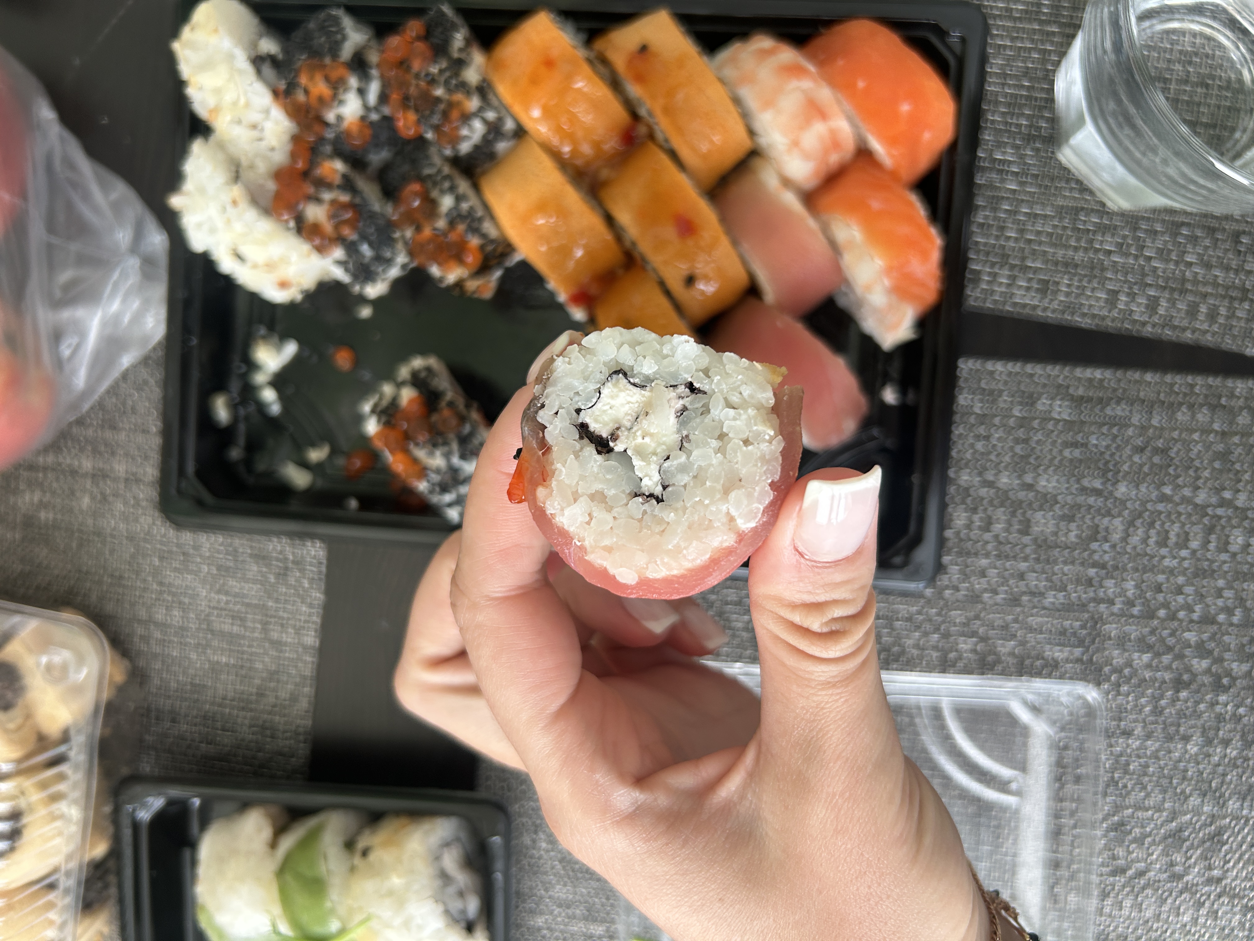 Состав: филе лосося (форели) слабосоленое, авокадо, крем-чиз, рис, нори