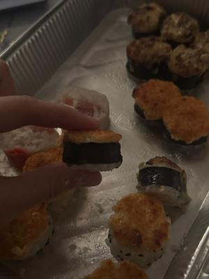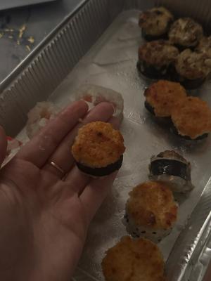 - ролл "Мидии терияки под сырной шапочкой": мидии, морковь терияки, кунжут, крем-сыр, соус терияки, нори, рис - 8 шт.