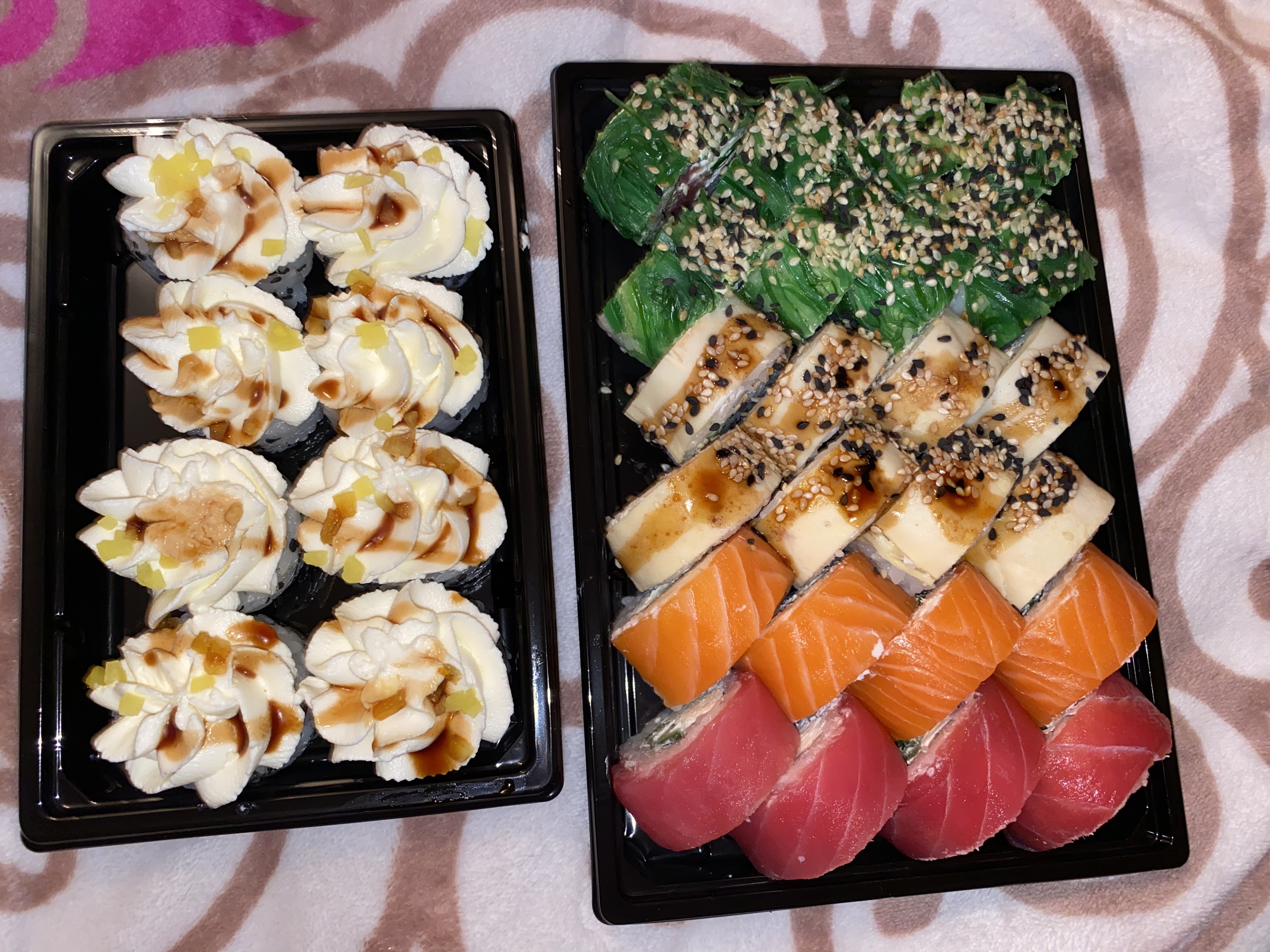 - Стоимость суши-сетов: от 32,90 р. от 58 р.