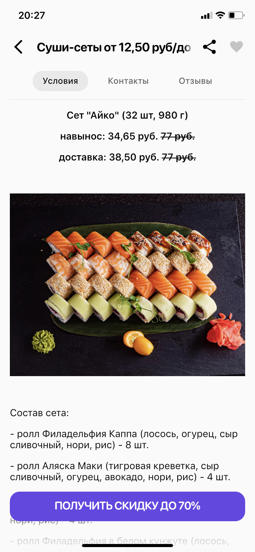 - Промокод дает право на скидку до 67% на суши-сеты от "ArtSushi"
