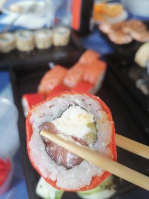 Состав: филе лосося (форели) слабосоленое, авокадо, крем-чиз, рис, нори