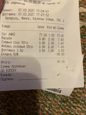 - Минимальная сумма заказа на доставку 31 декабря - 60 р. Менее 75 р. в заказе - доставка 5 р. Бесплатная доставка по г. Минску при стоимости заказа от 75 р.