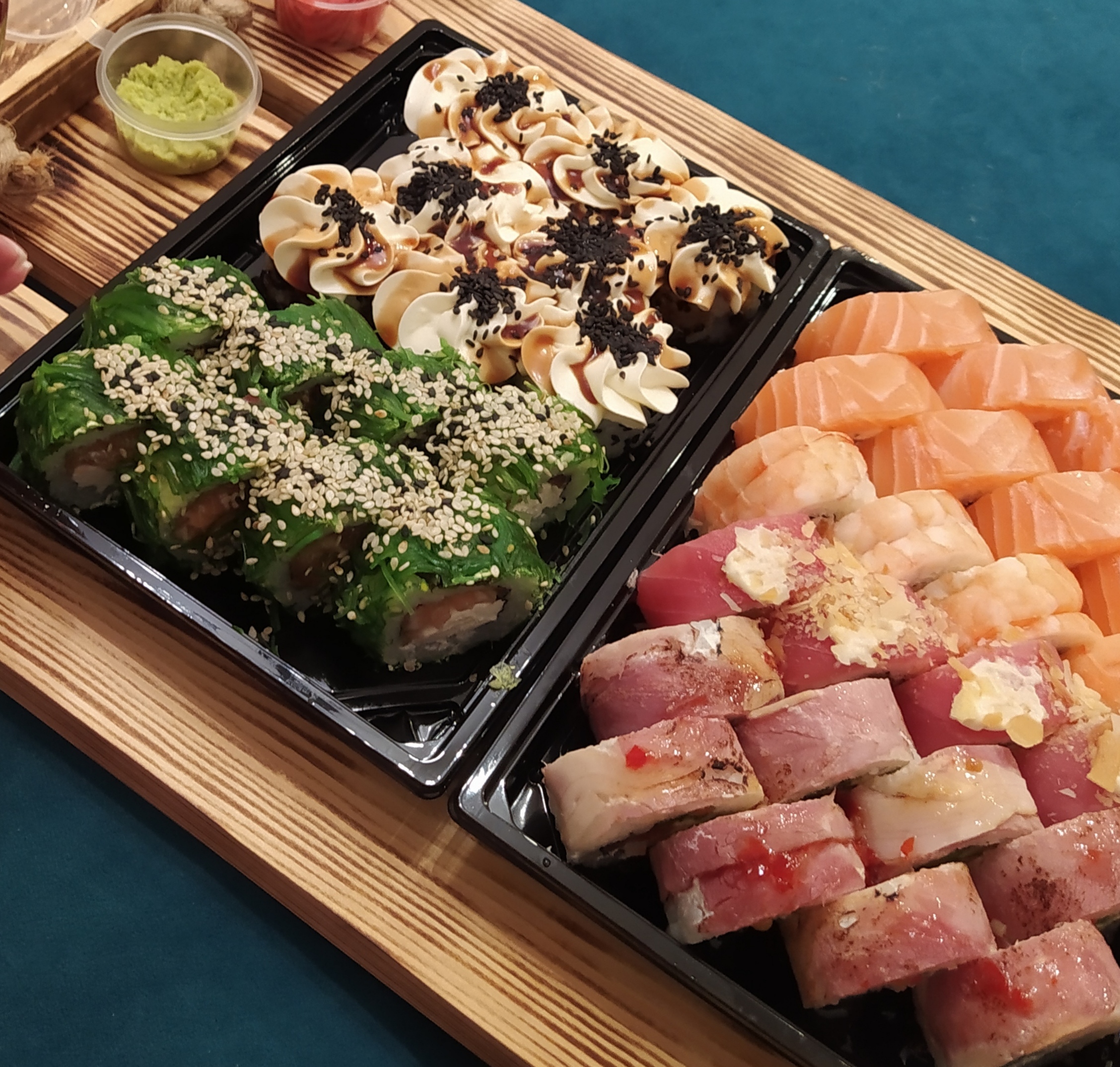 - Стоимость суши-сетов: от 32,90 р. от 58 р.