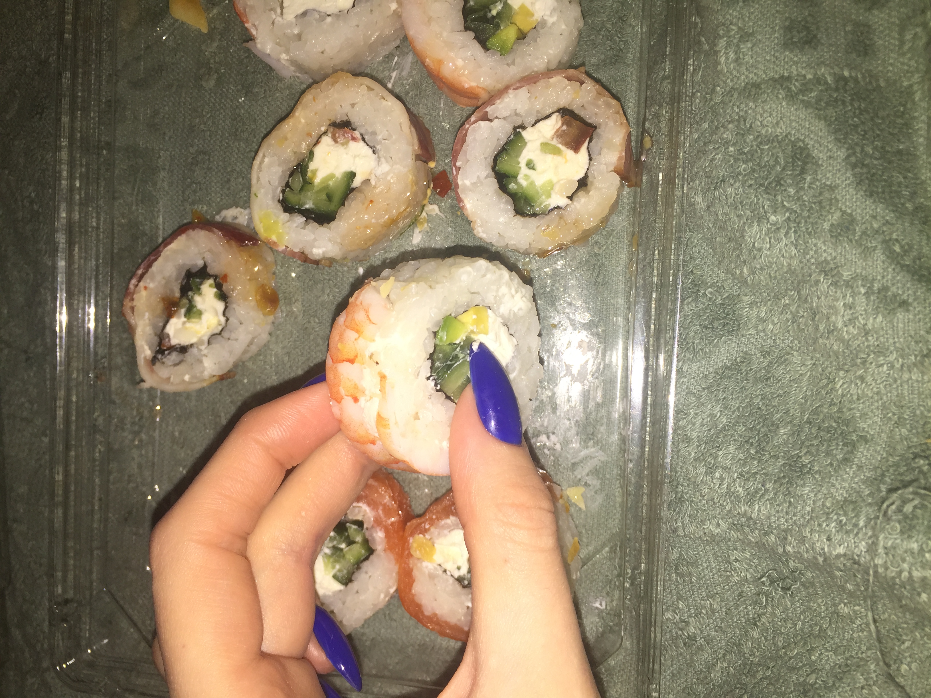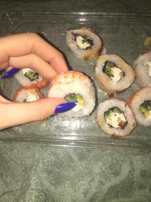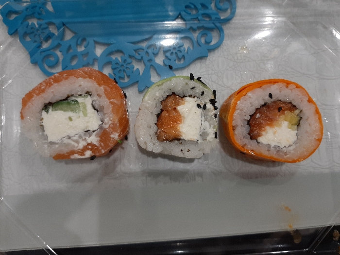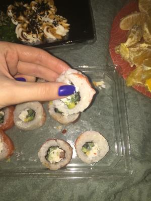 Состав: филе лосося (форели) слабосоленое, авокадо, крем-чиз, рис, нори