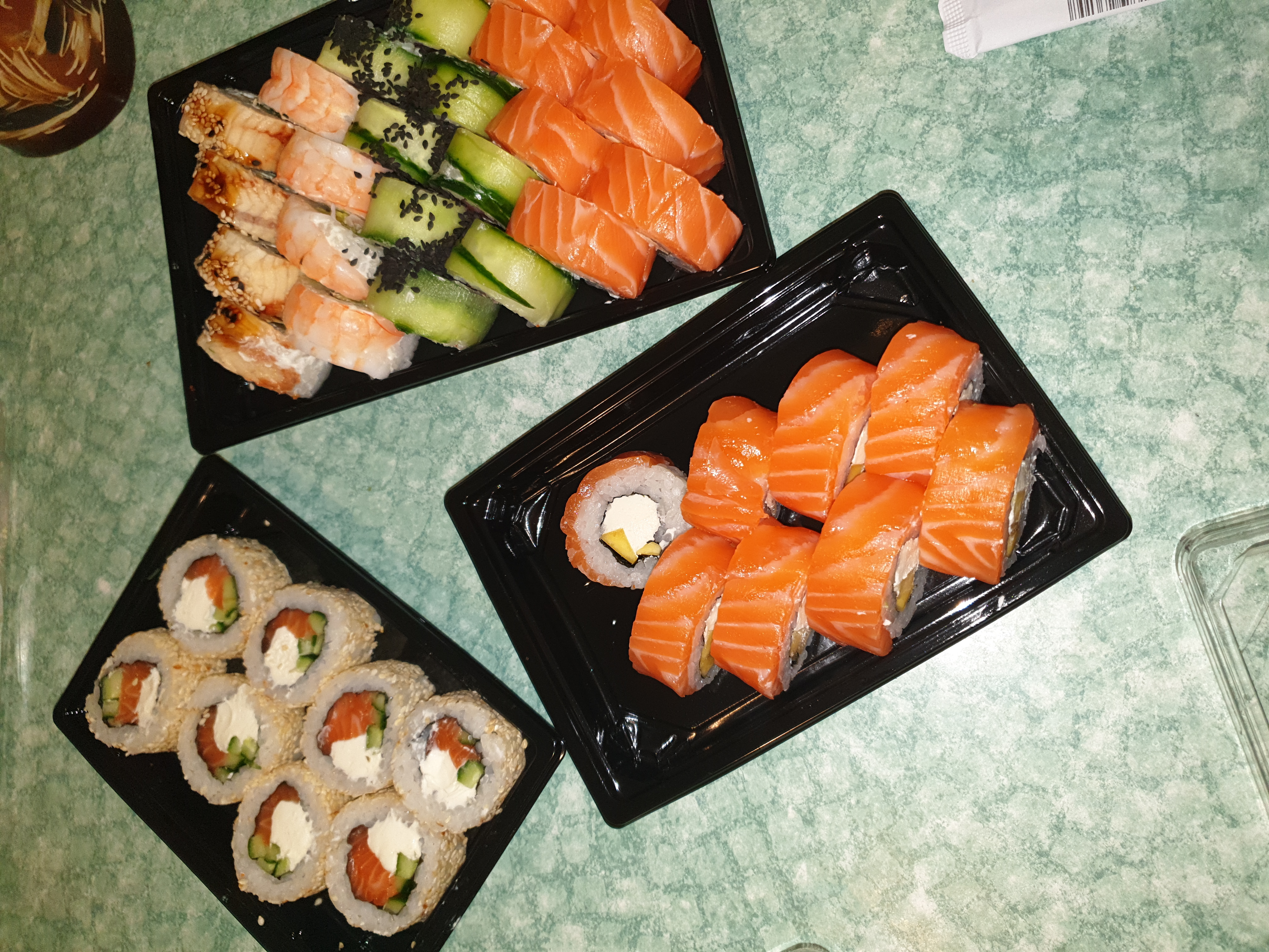 - Стоимость суши-сетов: от 32,90 р. от 58 р.