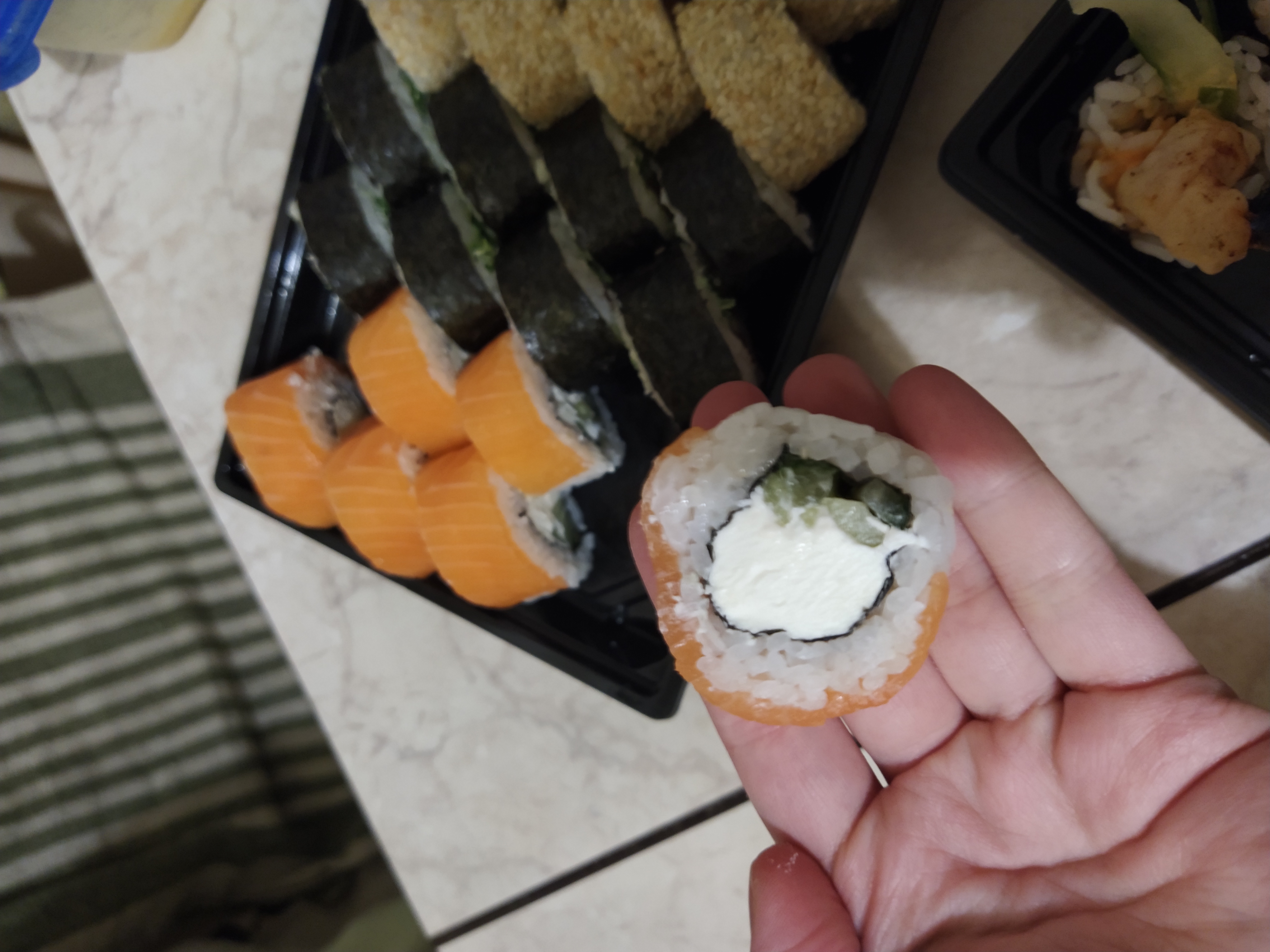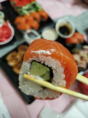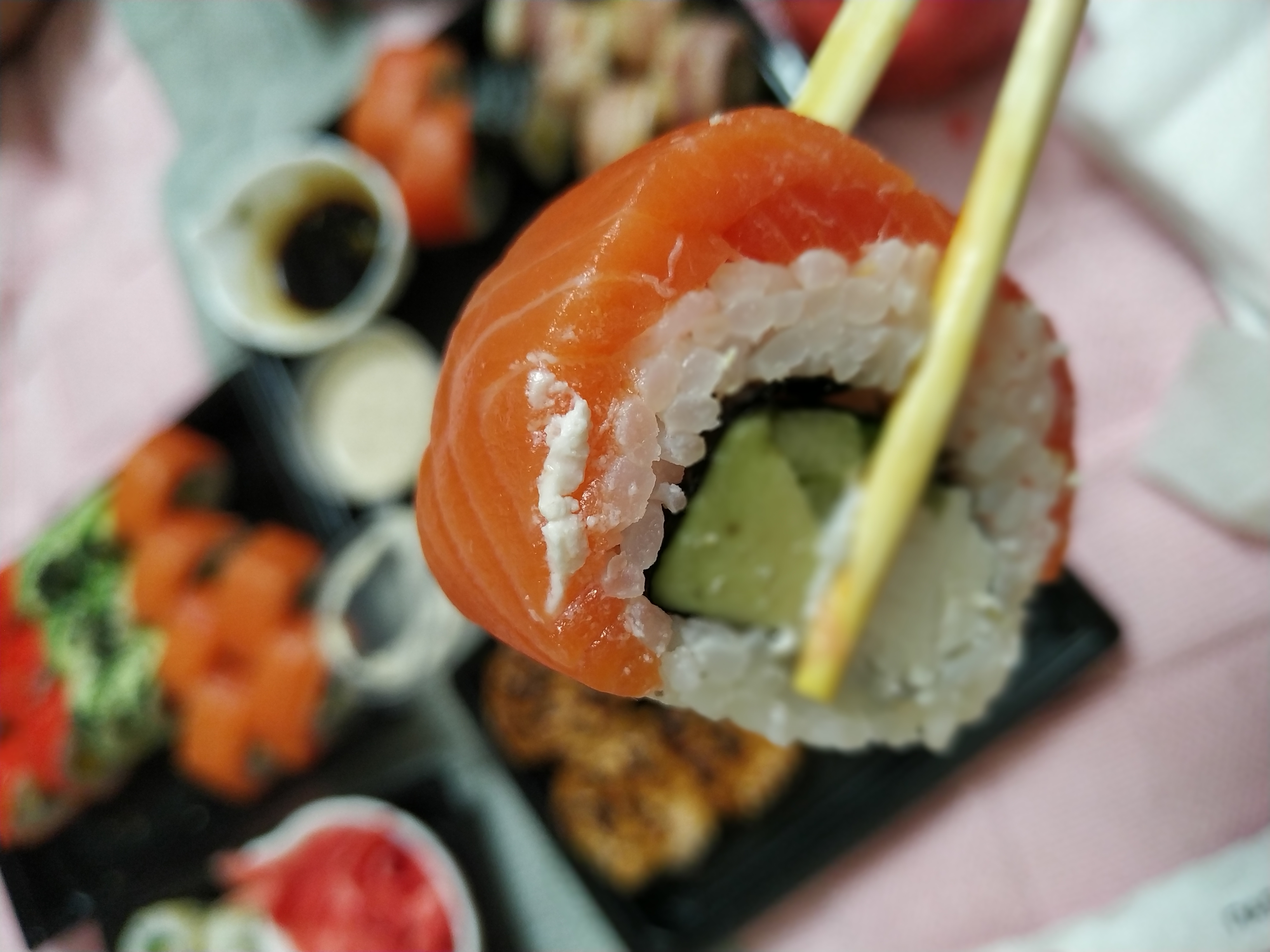 Состав: филе лосося (форели) слабосоленое, авокадо, крем-чиз, рис, нори
