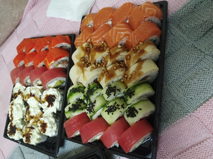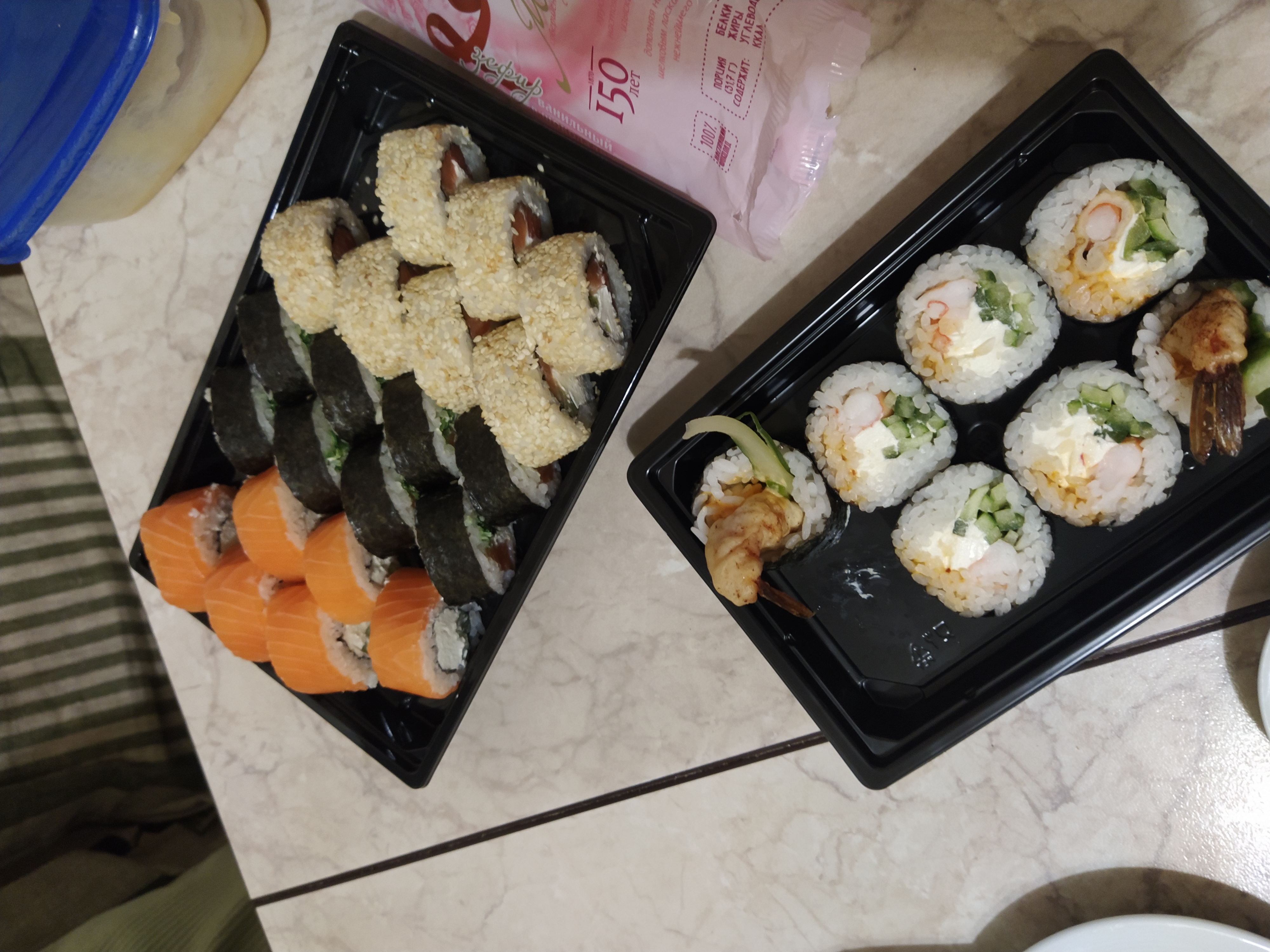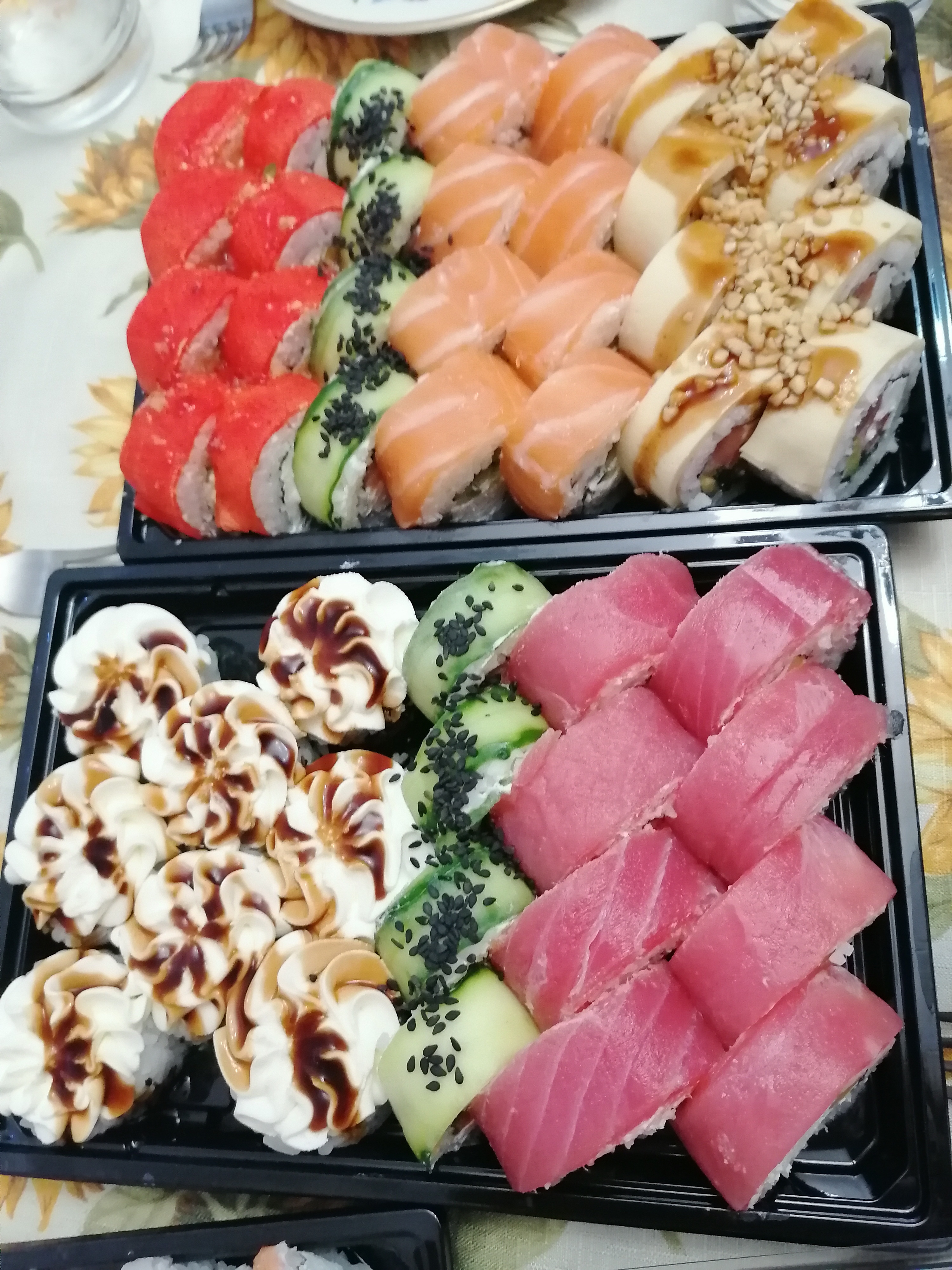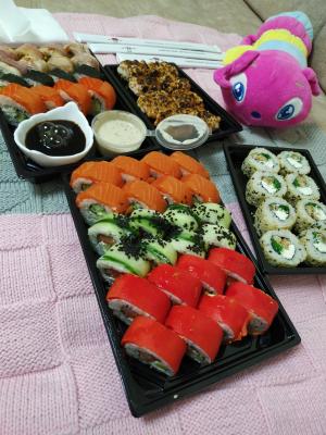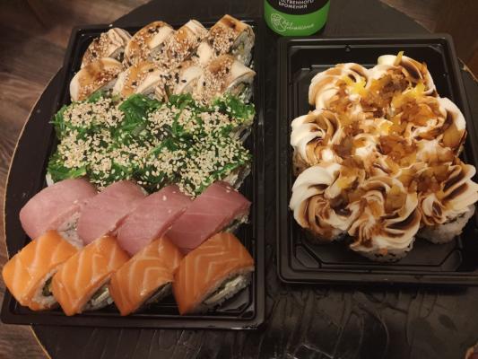 - Стоимость суши-сетов: от 32,90 р. от 58 р.