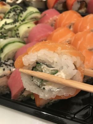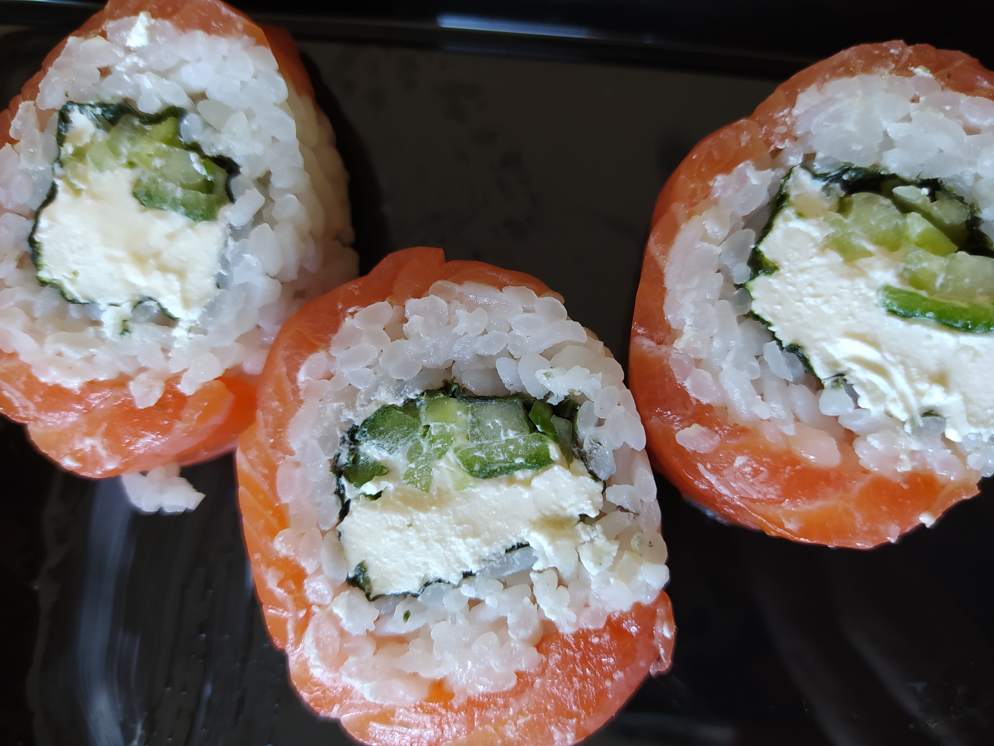 Состав: филе лосося (форели) слабосоленое, авокадо, крем-чиз, рис, нори