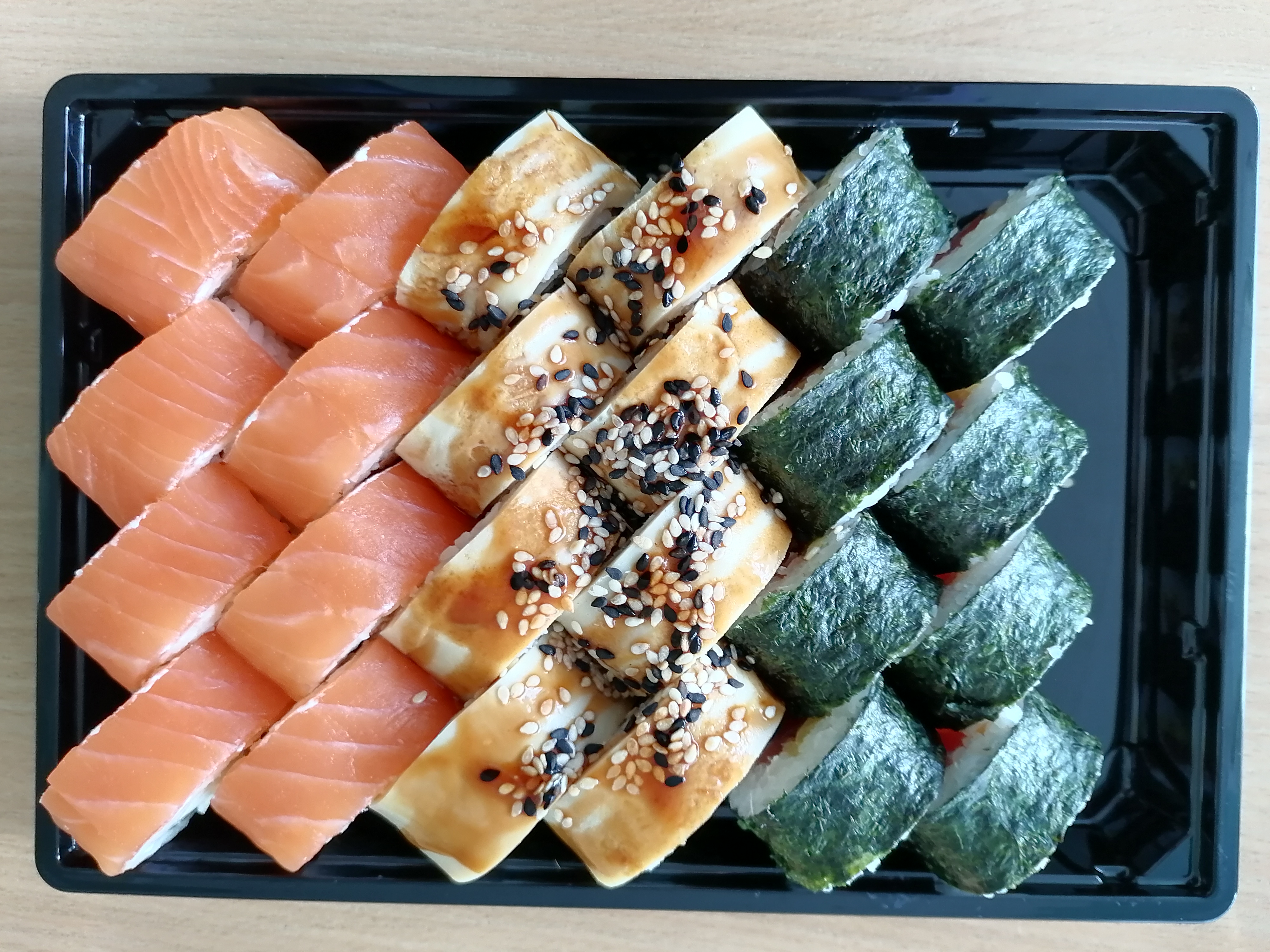 - гарнир: имбирь (25 г), соевый соус (40 мл), васаби (15 г) в подарок!