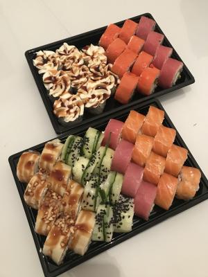- Стоимость суши-сетов: от 32,90 р. от 58 р.