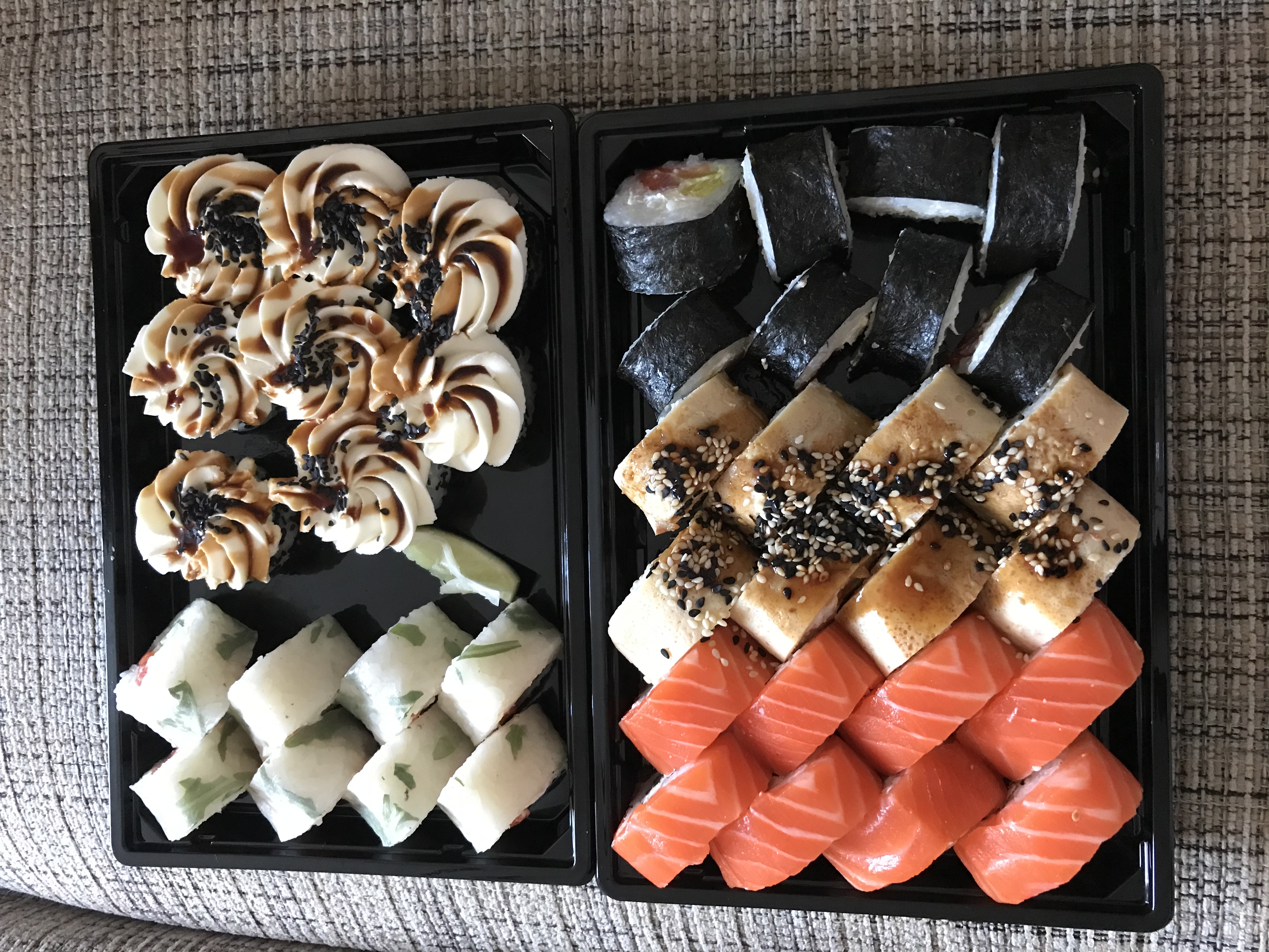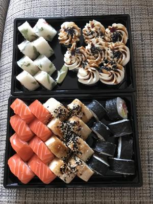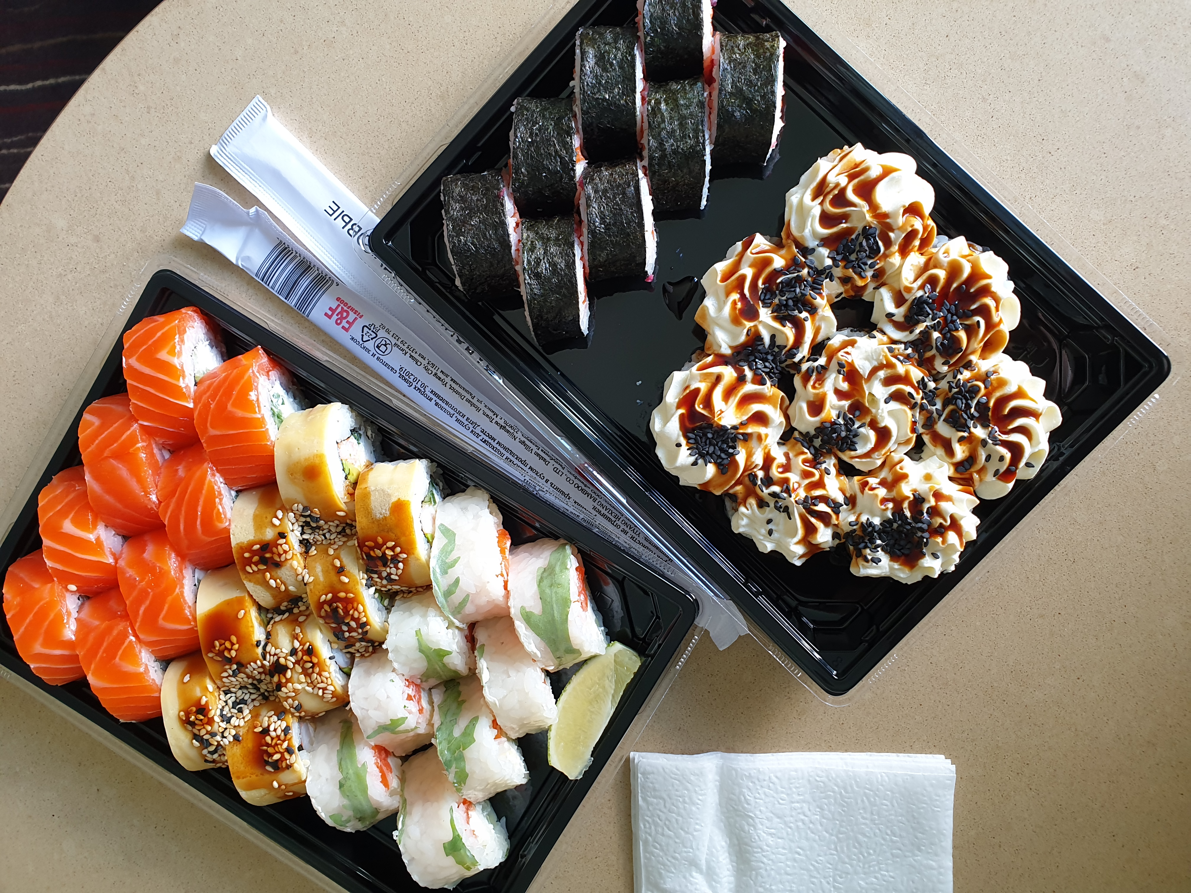 - Стоимость суши-сетов: от 32,90 р. от 58 р.