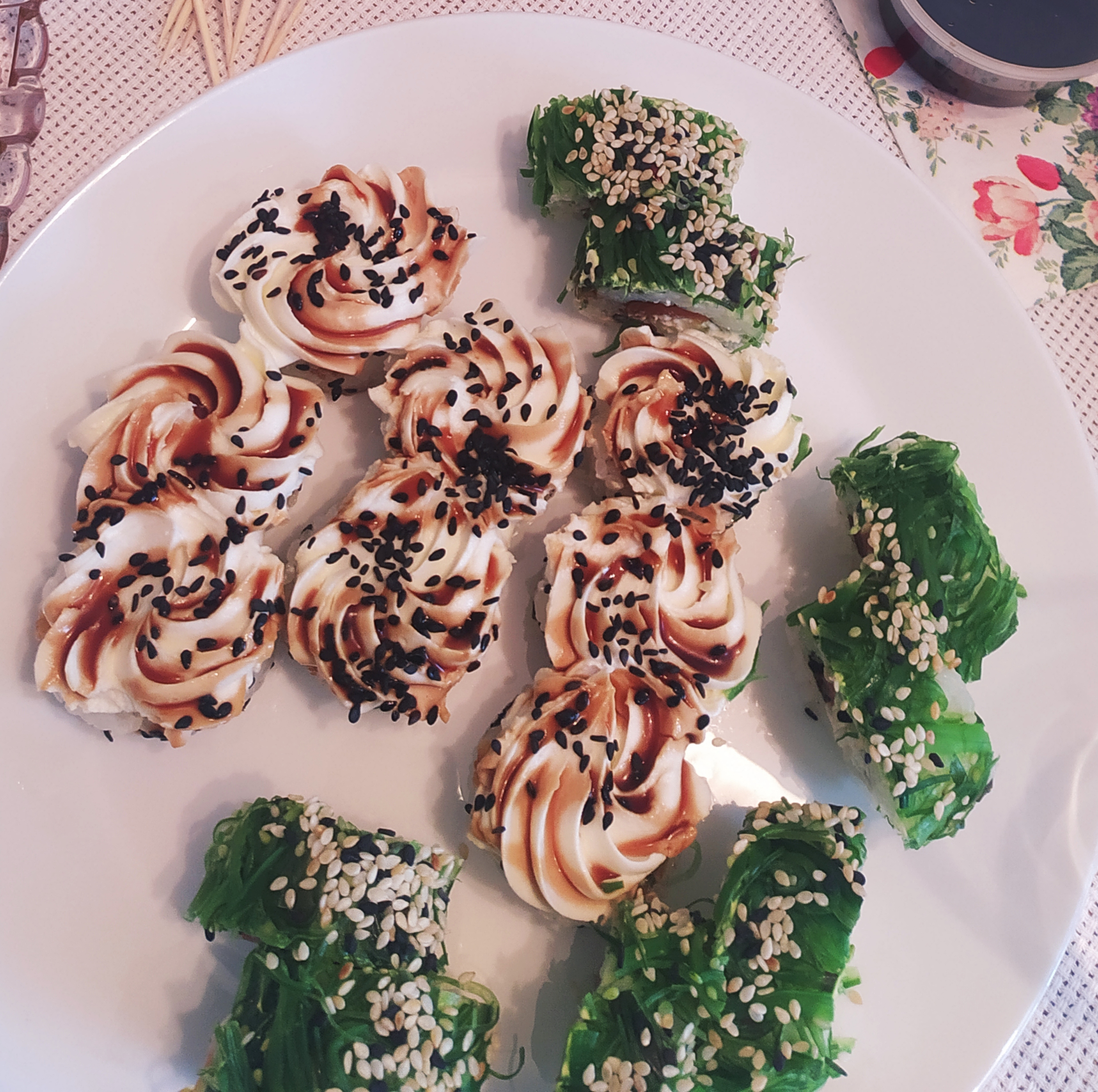 Состав: филе лосося (форели) слабосоленое, авокадо, крем-чиз, рис, нори
