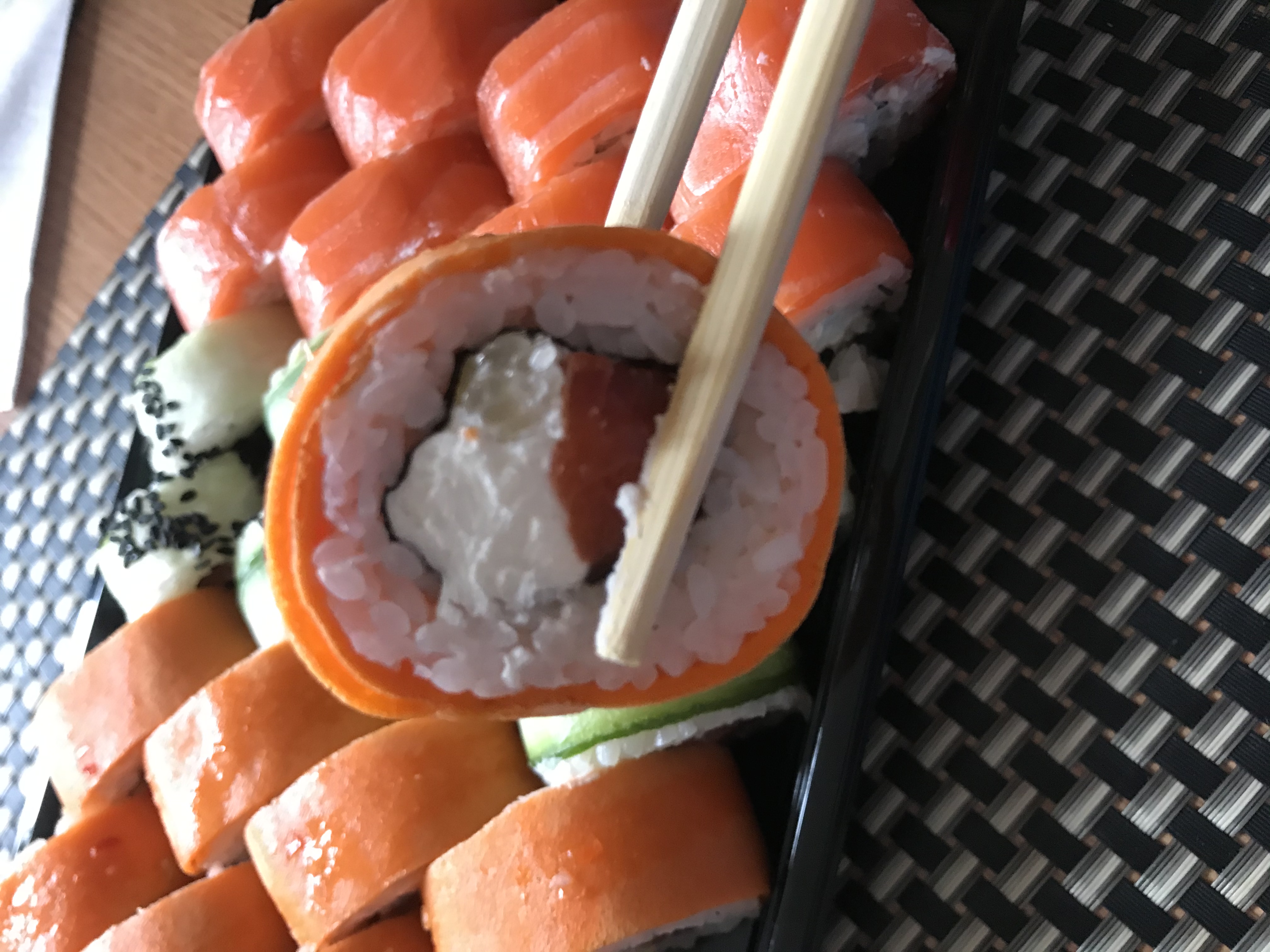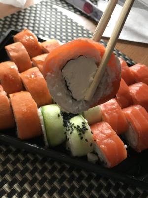 Состав: филе лосося (форели) слабосоленое, авокадо, крем-чиз, рис, нори