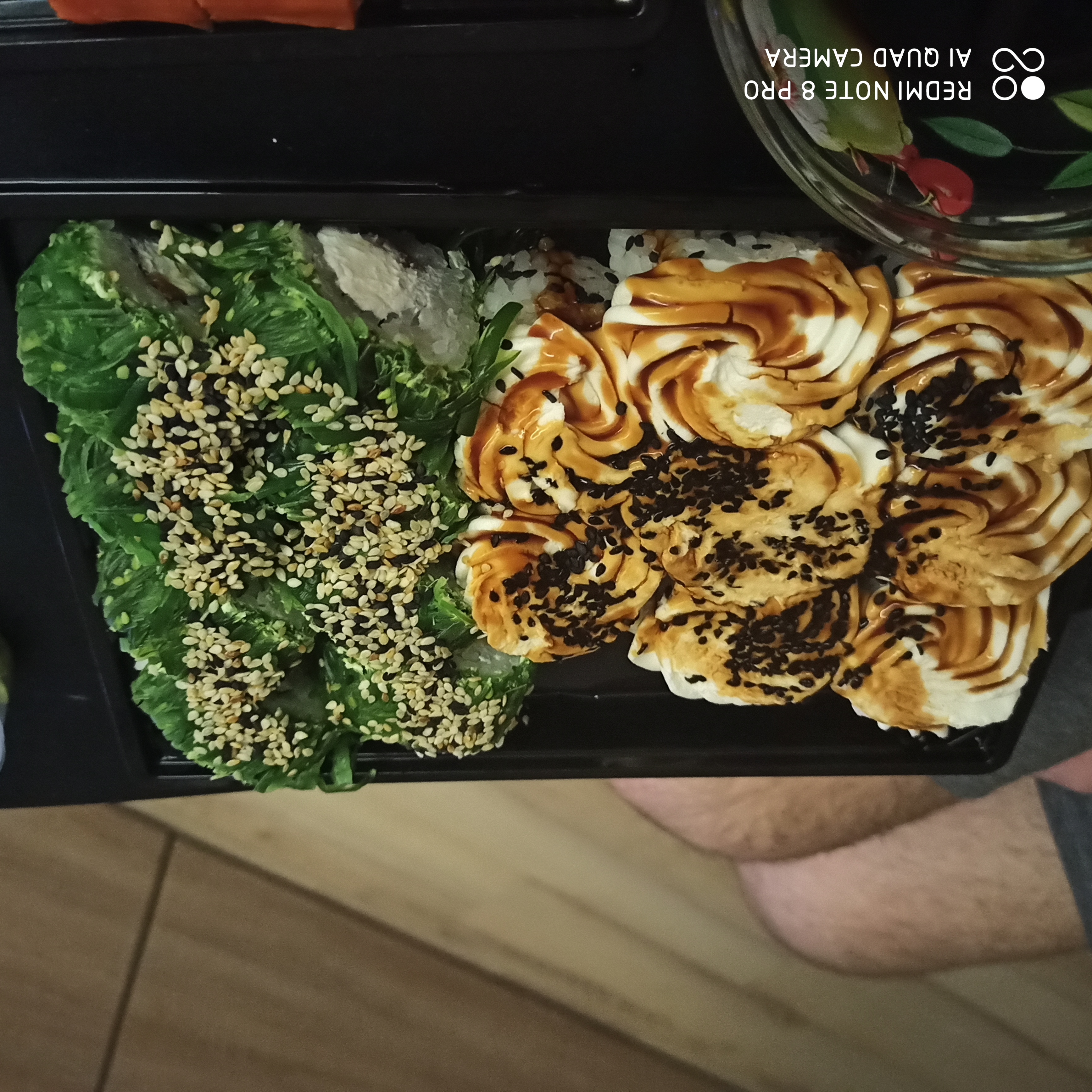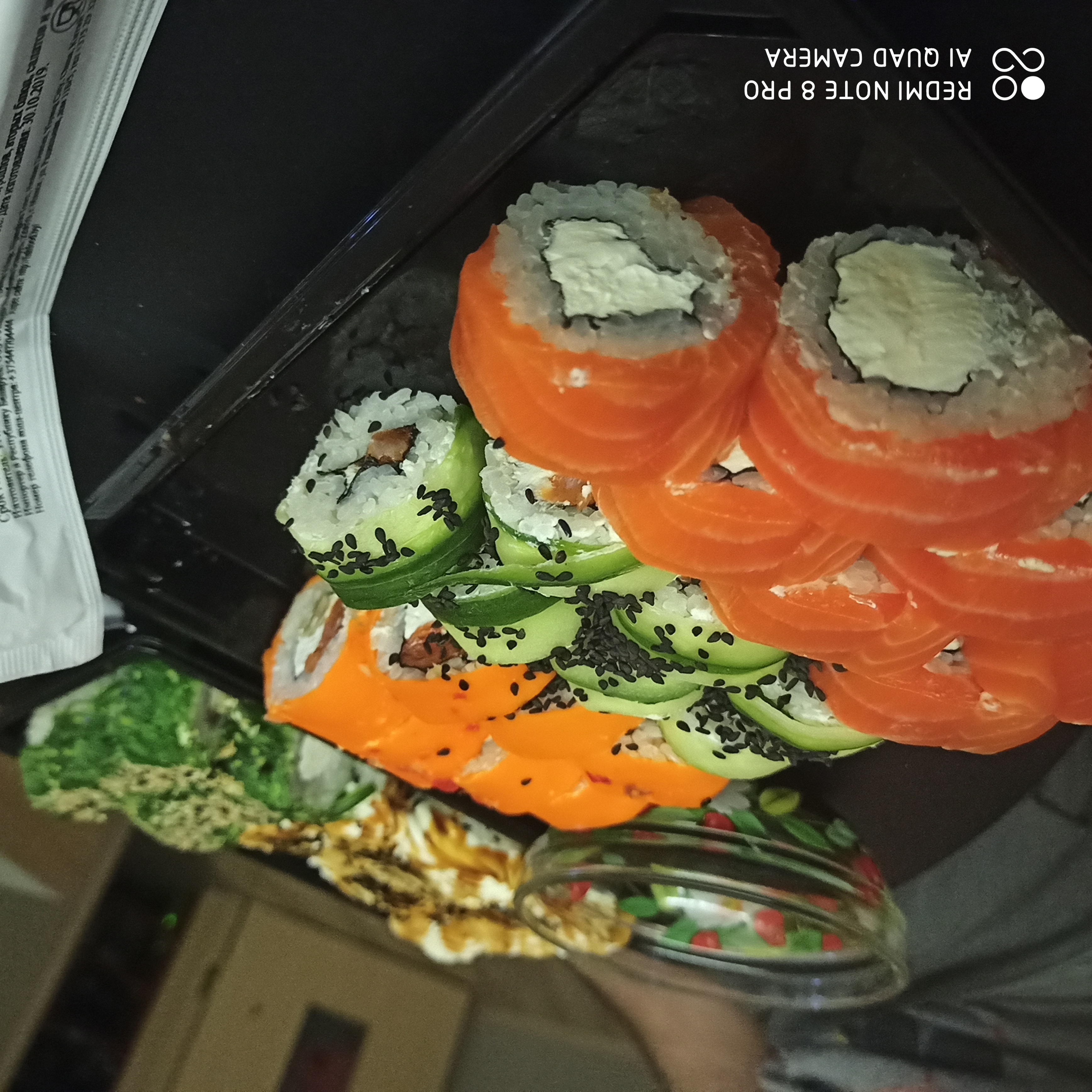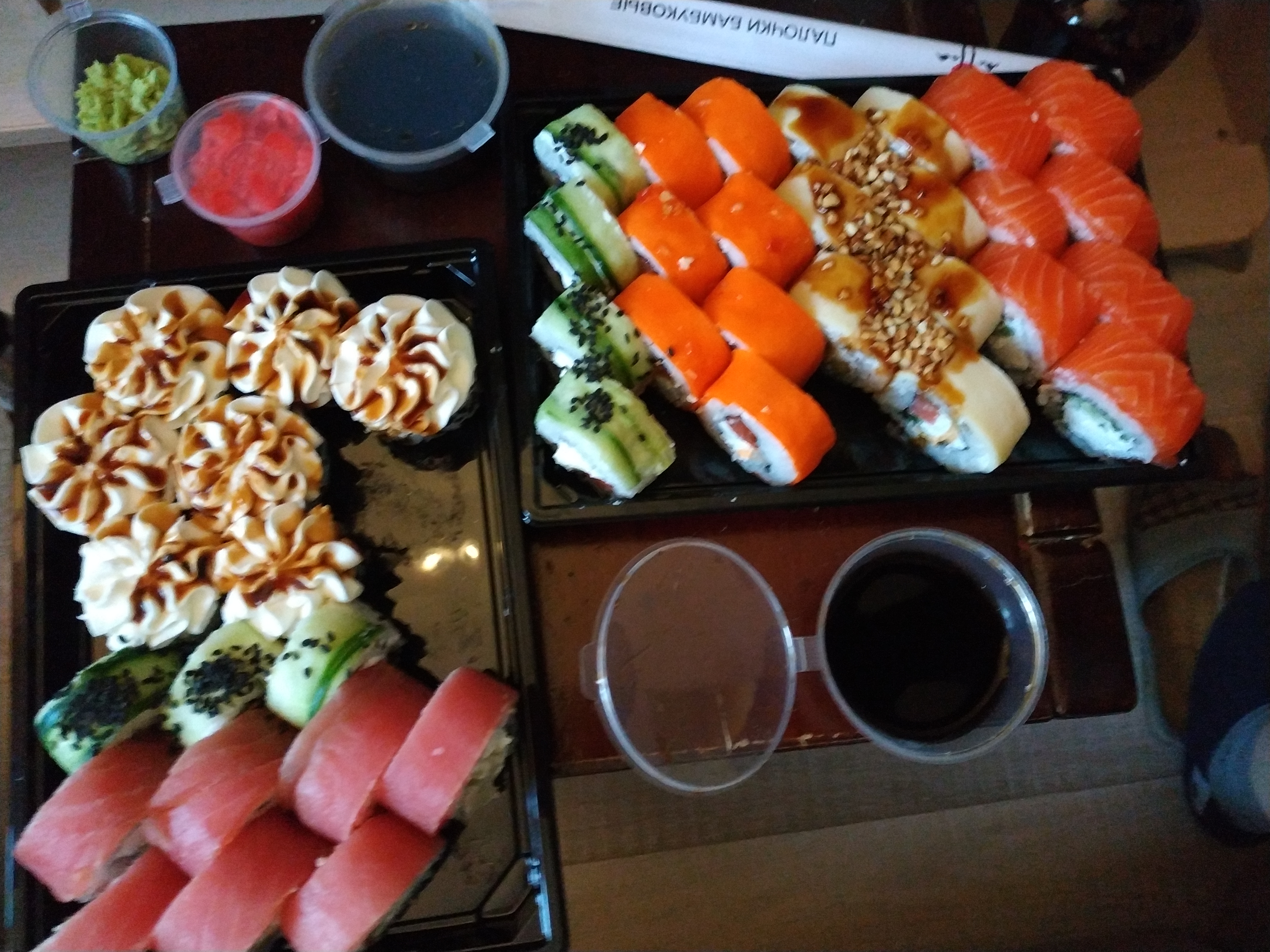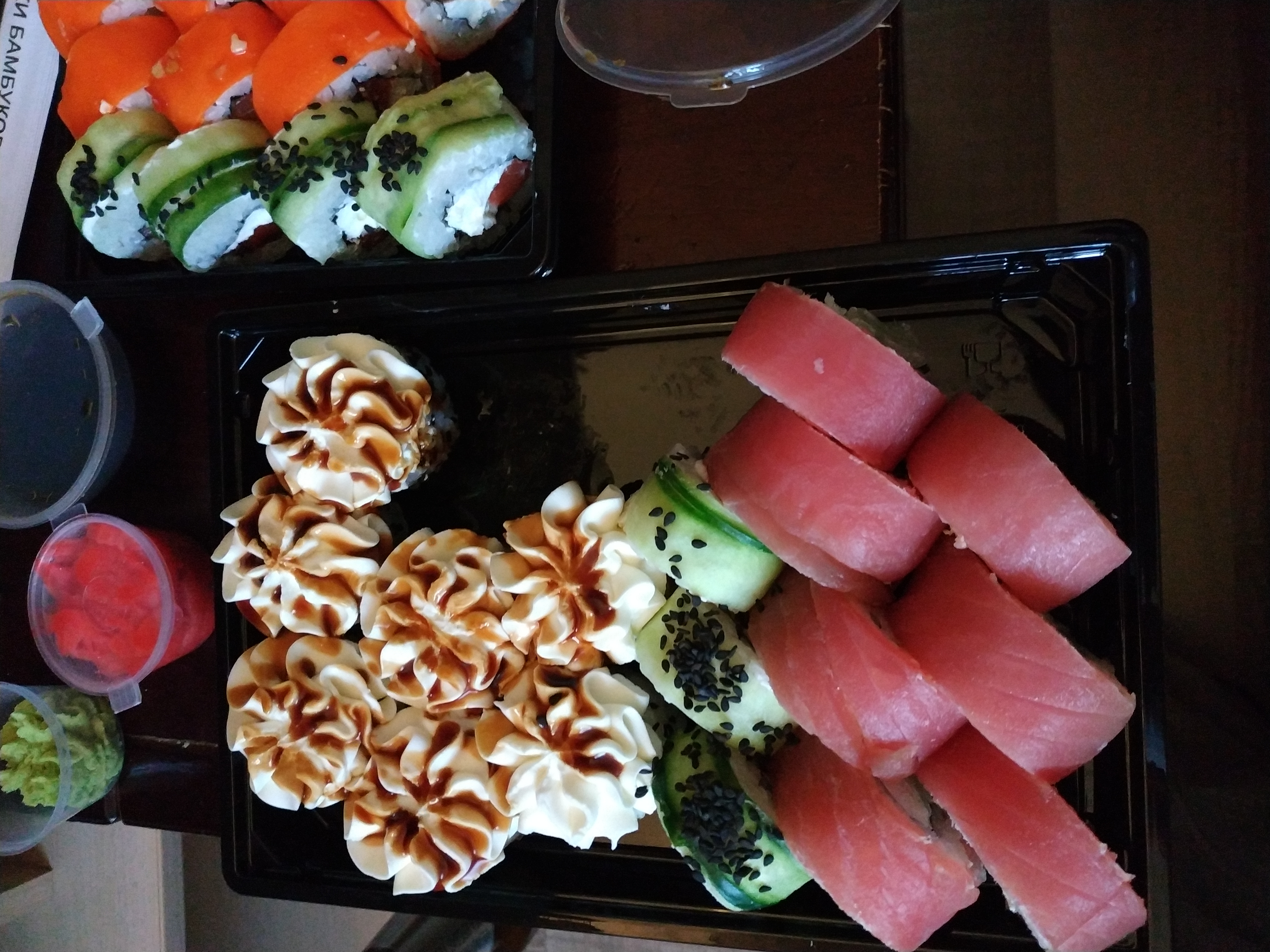- гарнир: имбирь (25 г), соевый соус (40 мл), васаби (15 г) в подарок!