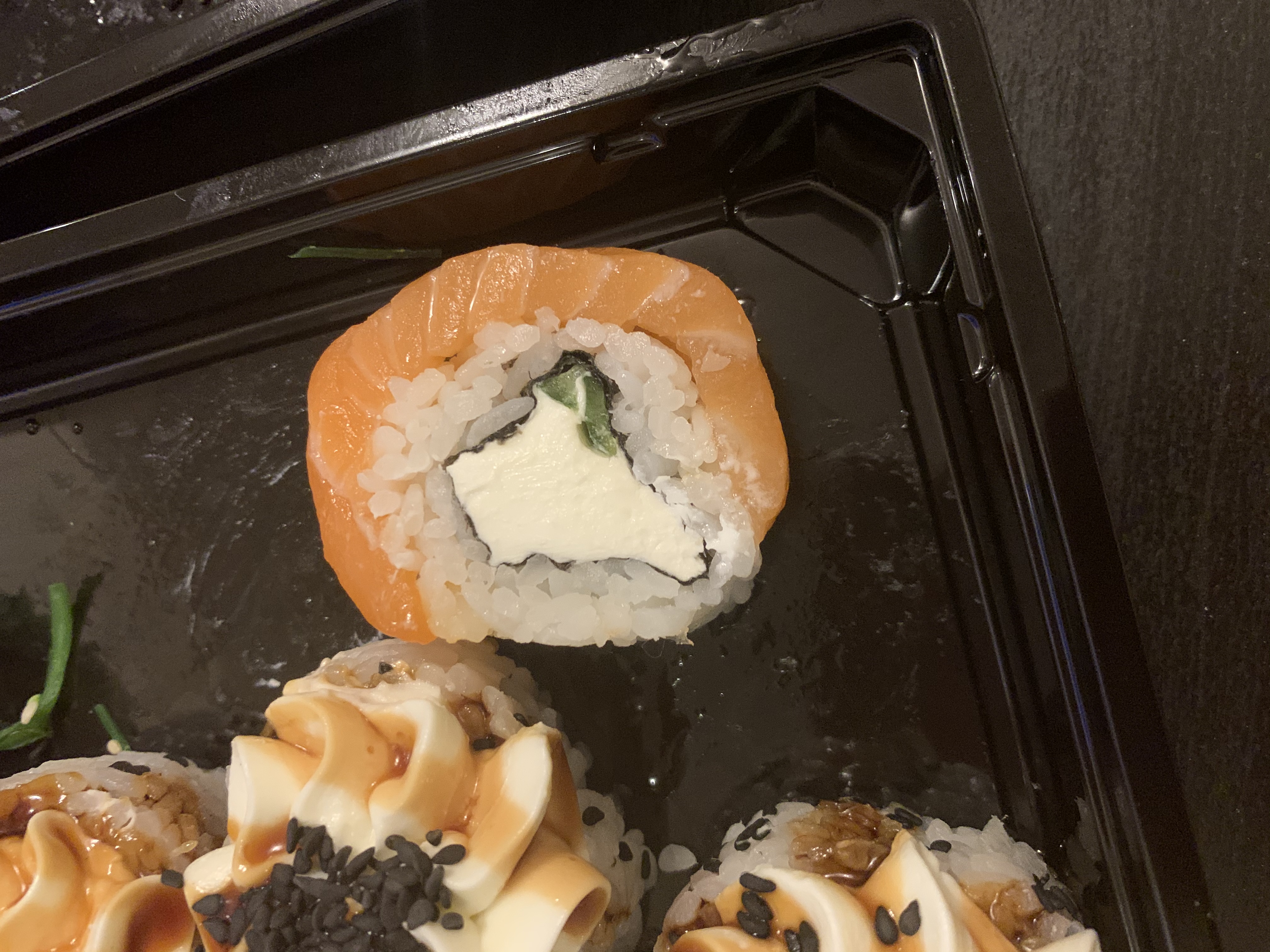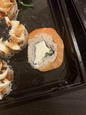 Состав: филе лосося (форели) слабосоленое, авокадо, крем-чиз, рис, нори