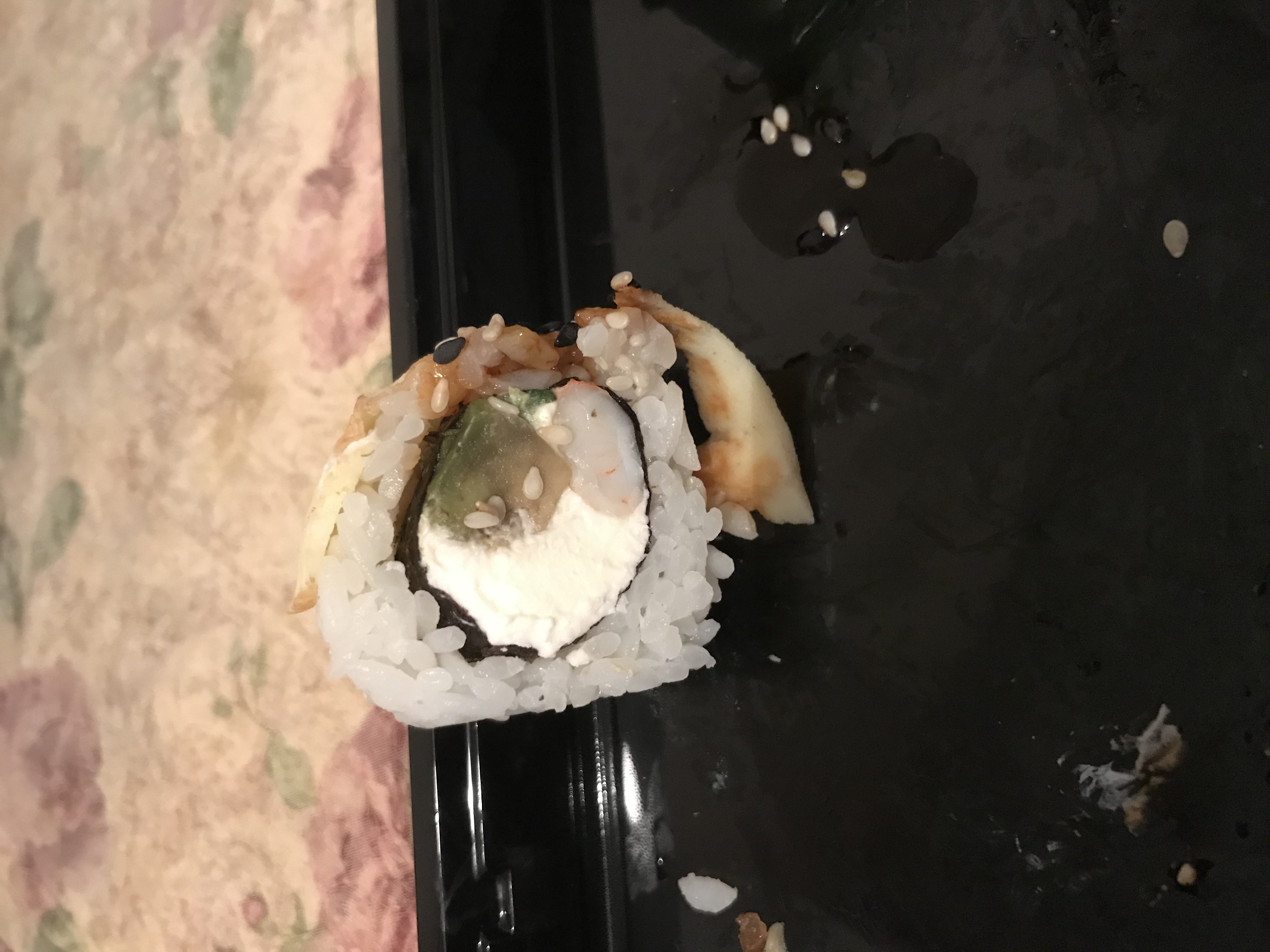 Состав: тигровая креветка, авокадо, огурец, сыр, рис, нори